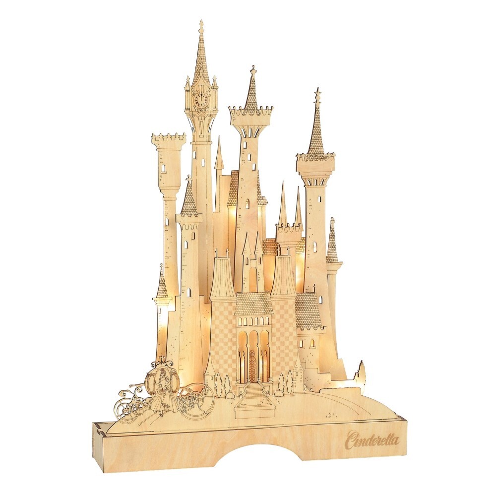 Natural elements, carefully crafted and layered, build a multidimensional illuminated scene. This beautiful scene highlights Cinderella's Castle creating a magical window or table decoration.