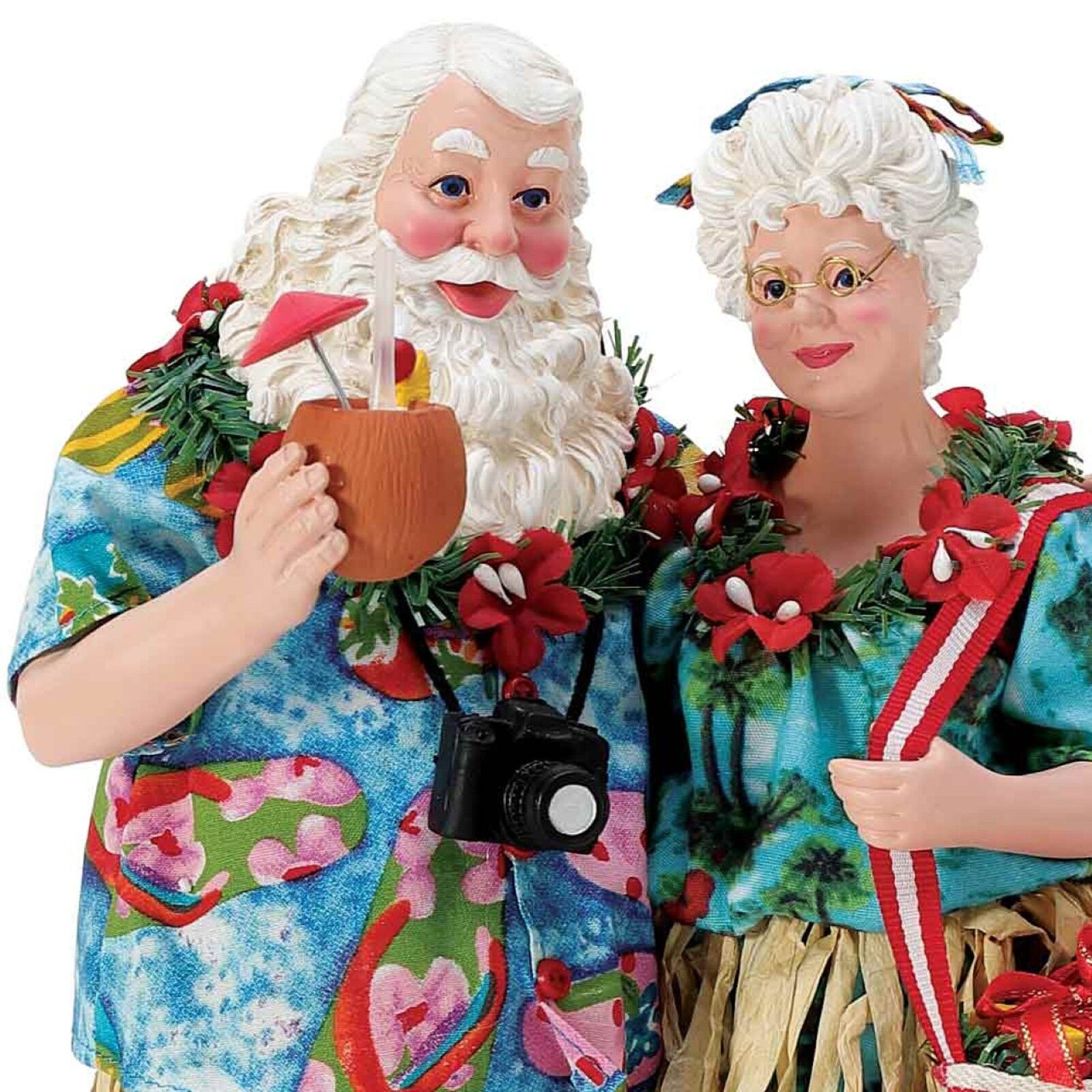 Dressed in Clothtique Fabrics, Santa and his wife are ready for a day at the beach. Uniquely sculpted, handmade and designed by Ann Dezendorf in the US.