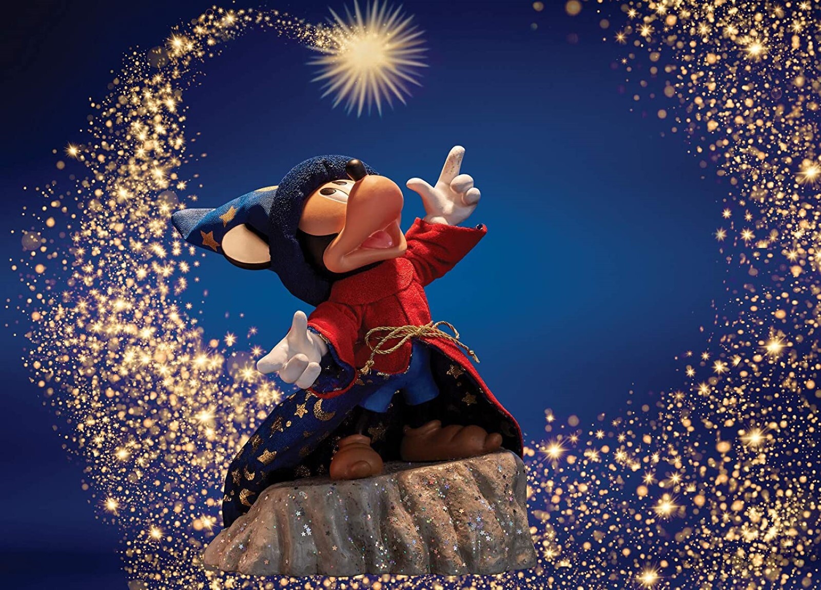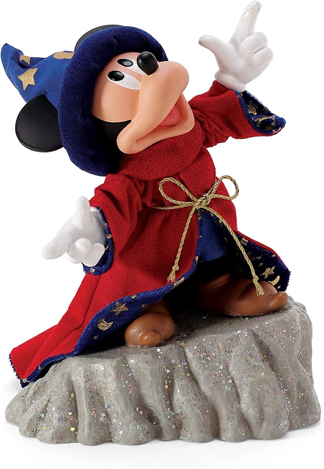 This Possible Dreams Sorcerer Mickey figurine commemorates the 80th Anniversary of the classic Disney movie "Fantasia". Dressed in a Clothtique robe with metallic printed velour, Mickey comes to life on the rocky ledge