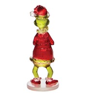 The Grinch hasn't stolen Christmas yet, but he does steal the show! Glittering exquisitely, this acrylic Grinch statuette is a marvel to behold. His hands clasped connivingly, the Grinch plans his next theft with style and sparkle.