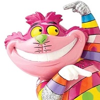 Bright, fun, and full of mischief, this Cheshire Cat figurine more than measures up. Pop artist Romero Britto gives the grinning feline a full coat of colors and a shimmery touch of "diamond dust." The handcrafted design is sculpted from stone resin.