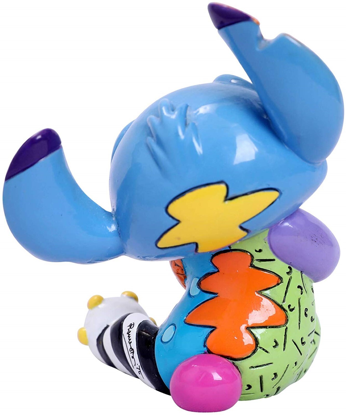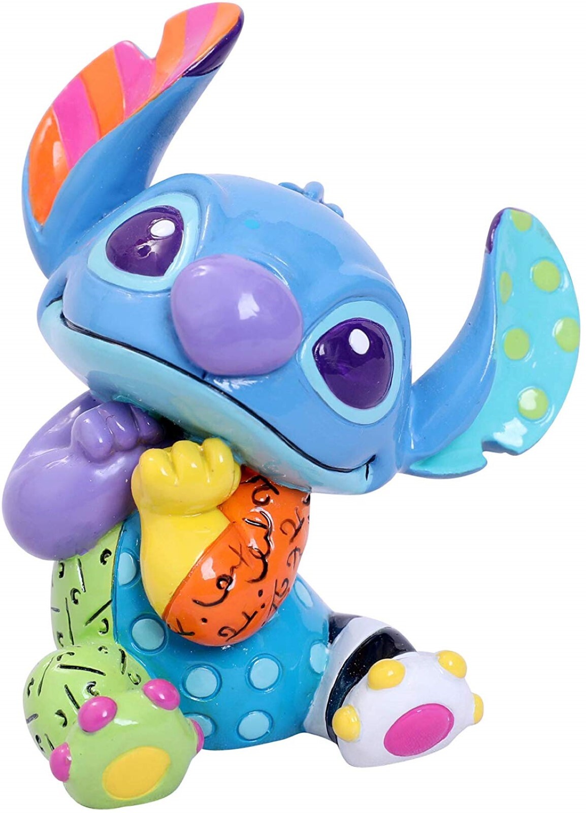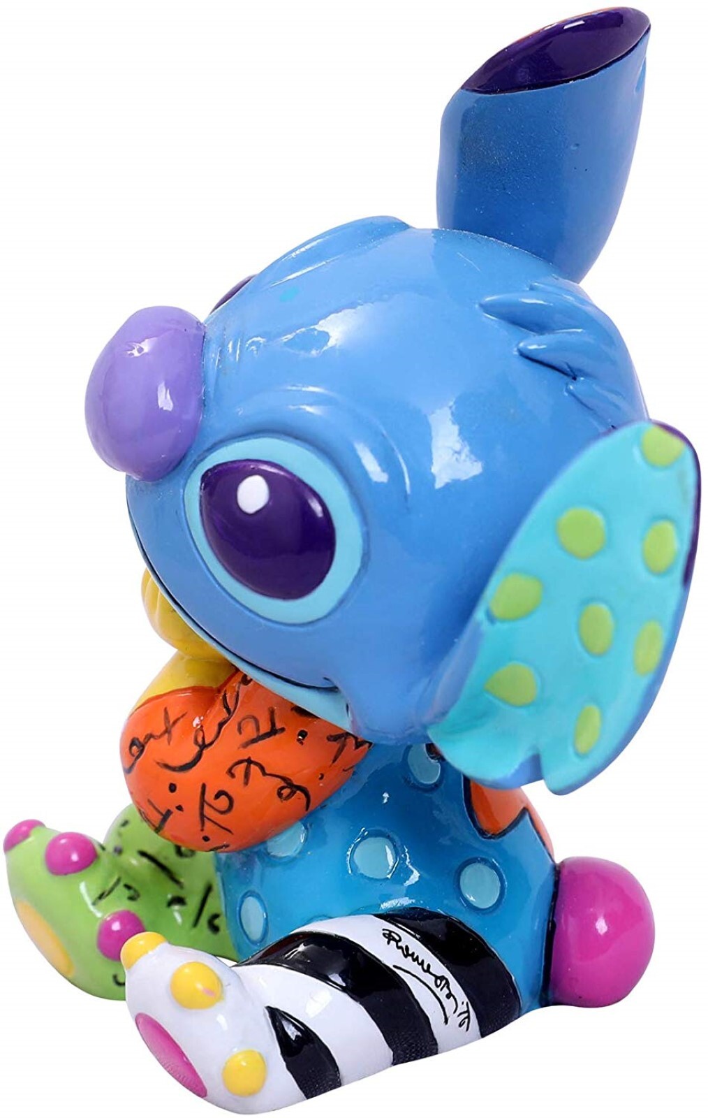 Experiment 626 was designed to be the ultimate bioweapon, but he discovered a gentler life after crash-landing in Hawaii and being adopted by a little girl named Lilo. Stitch's blue fur has taken on a vivid array of colours as designed by Romero Britto. The high gloss shiny finish figurine is presented in a branded gift box.