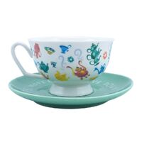 Let your mind wonder as you sip your afternoon cup with this Alice in Wonderland tea cup and saucer set. It features wonderful illustrations from Alice in Wonderland on a beautifully crafted ceramic cup and saucer. The saucer reads the caption 'Clean Cups, Clean Cups. Move Down, Move Down!'
