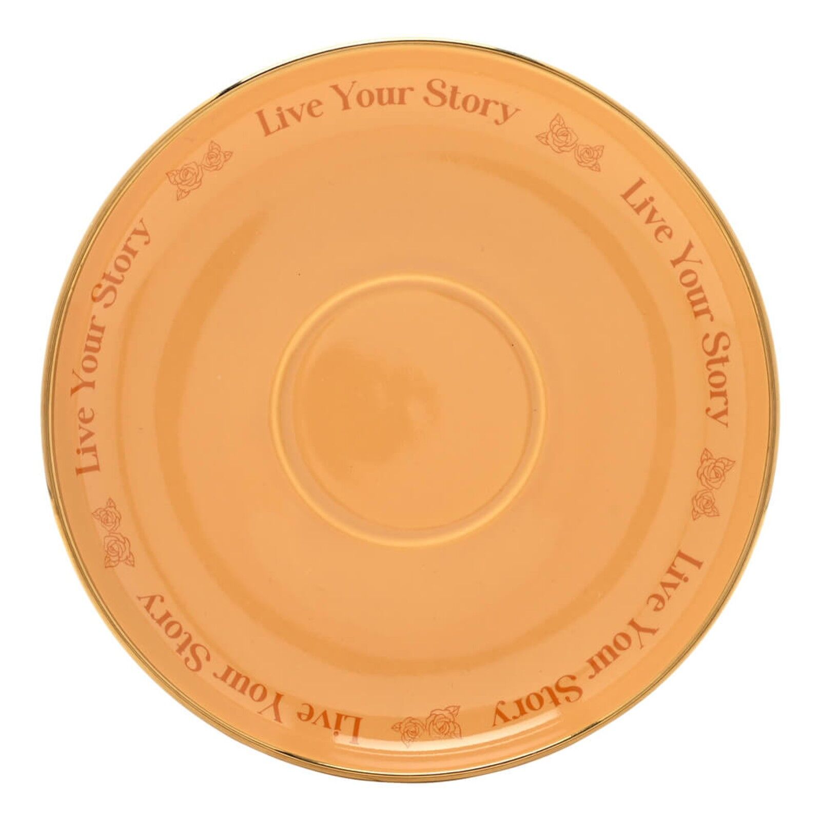 Create a royal tea experience with the Disney Pastel Princess Belle Tea Cup and Saucer. This orange tea cup, adorned with a golden rim and a whimsical Belle design, rests elegantly on a matching saucer.