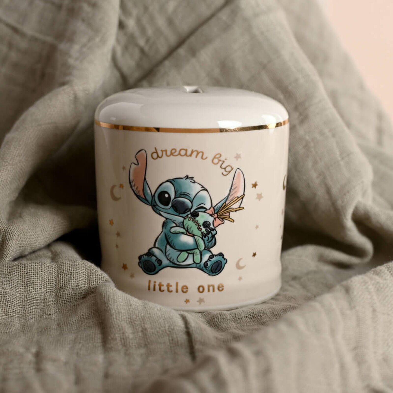 Bring the magic of Disney into your home with the charming Stitch Baby Money Bank, a playful ceramic treasure featuring the lovable character from Lilo & Stitch. This money bank showcases Stitch sitting and holding a flower, with a whimsical expression that appeals to both children and adults alike, making saving coins a fun and engaging endeavour. A perfect addition to any Disney fan's collection.