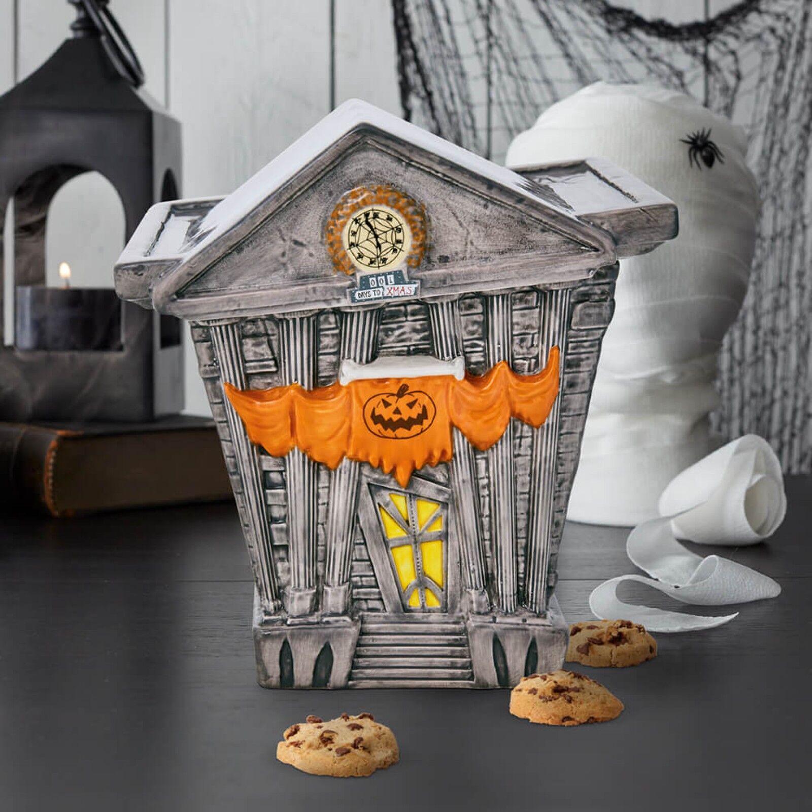 Halloween Town's iconic City Hall sets the stage for family gatherings this Halloween. This ceramic cookie jar is the perfect place to store your Halloween treats or year round baked treats.