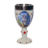 Inspired by the opening sequence of Beauty and the Beast, this stainless steel lined decorative chalice is fit for royalty. Adorned with 16 red faux gems and 4 decaled "stained glass" vignettes tell the love story that's as old as time.