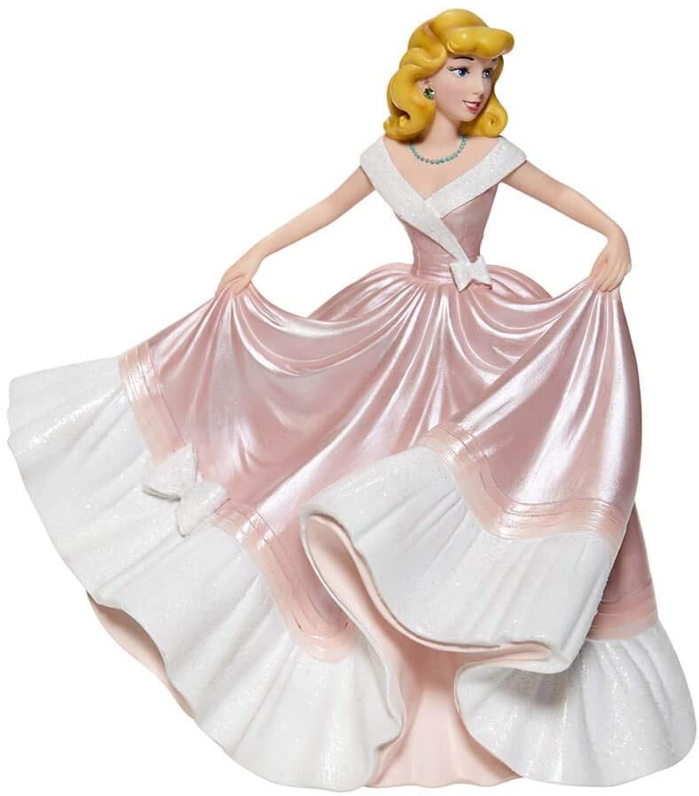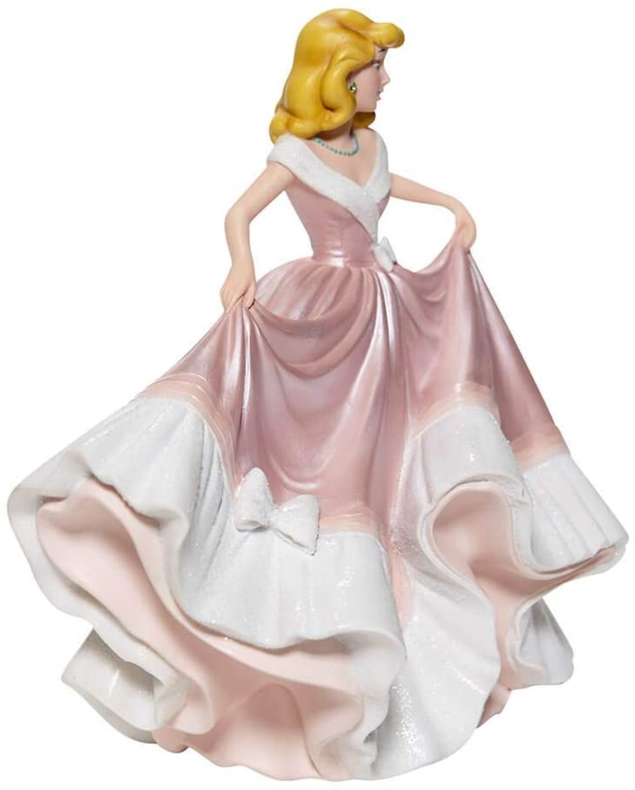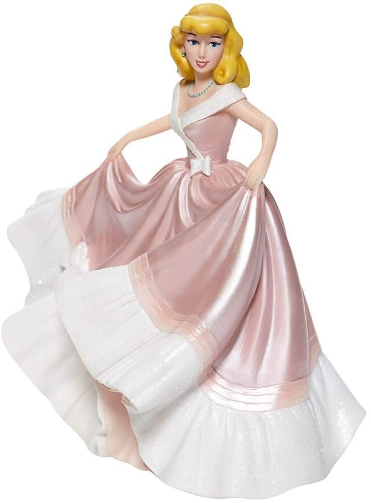 Disney Couture de Force celebrates the 70th Anniversary of Walt Disney's classic Cinderella capturing the kind and humble Princess in this fresh interpretation of the her first ball gown, the pink one of "what might have been" had her evil stepsisters not destroyed it.