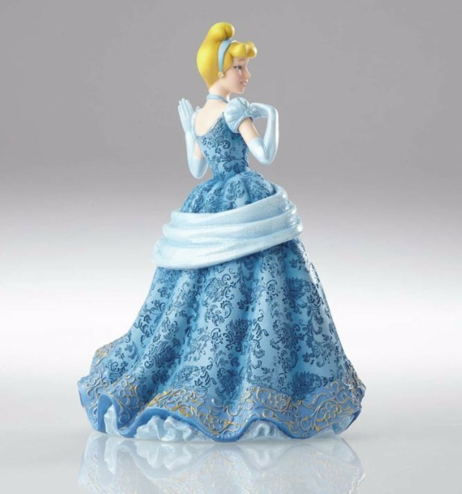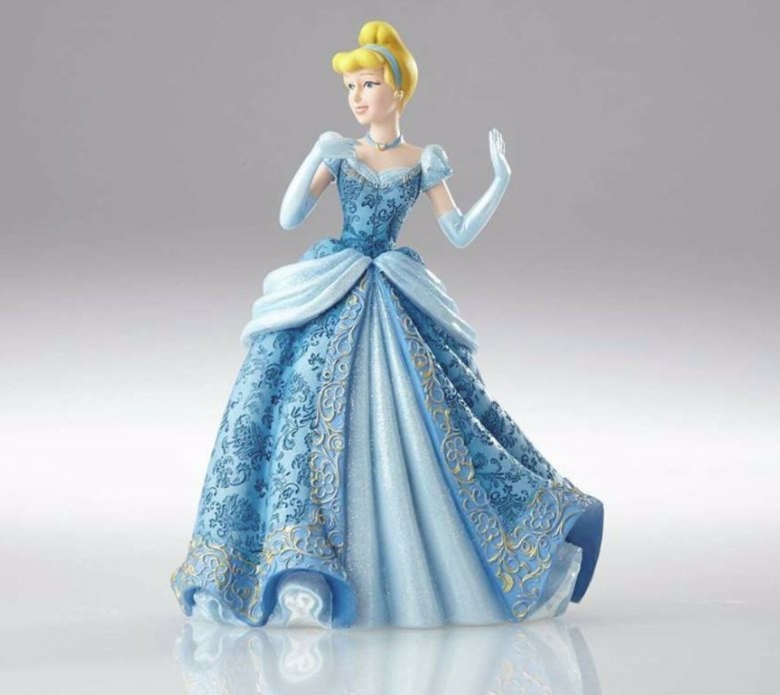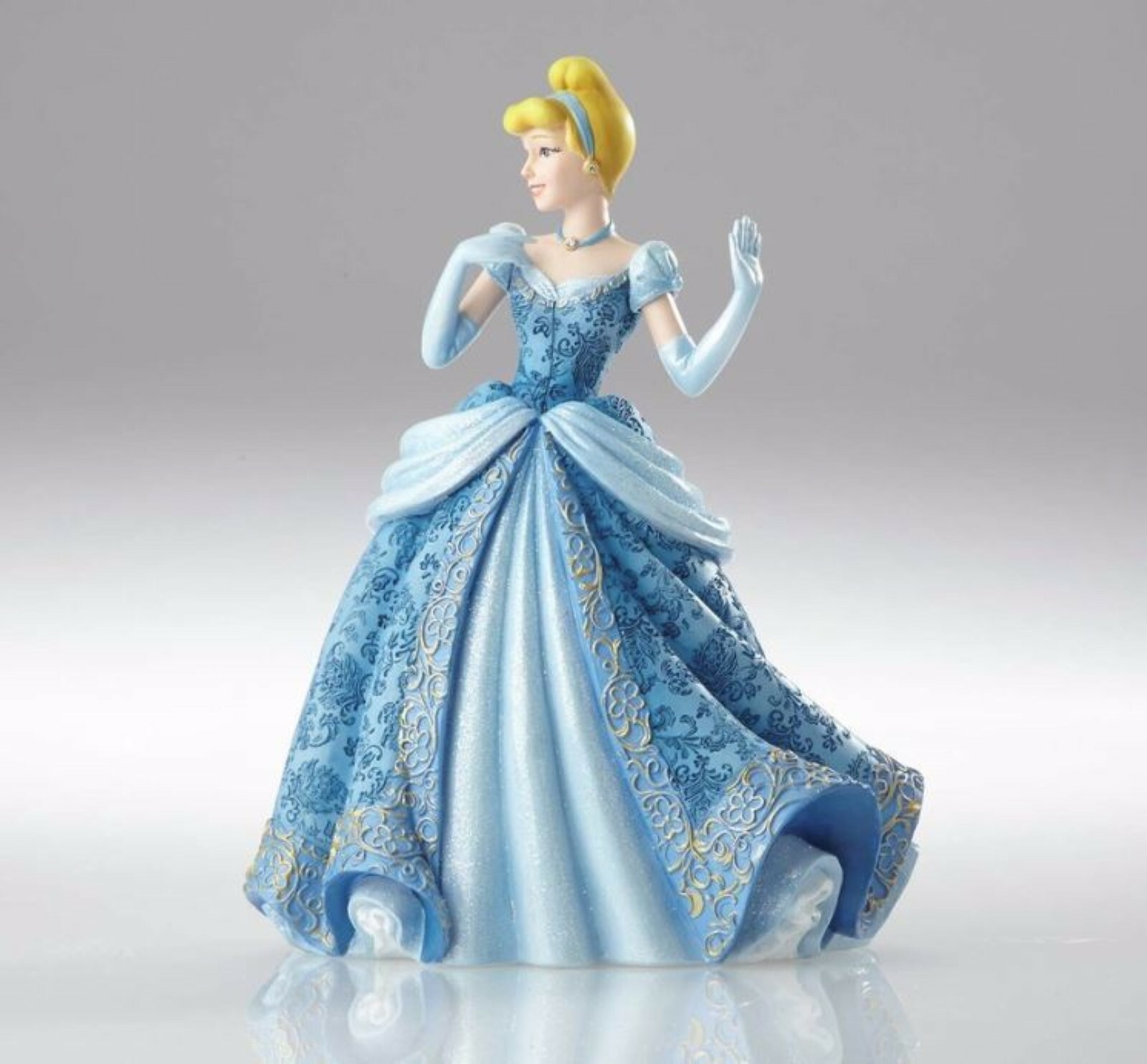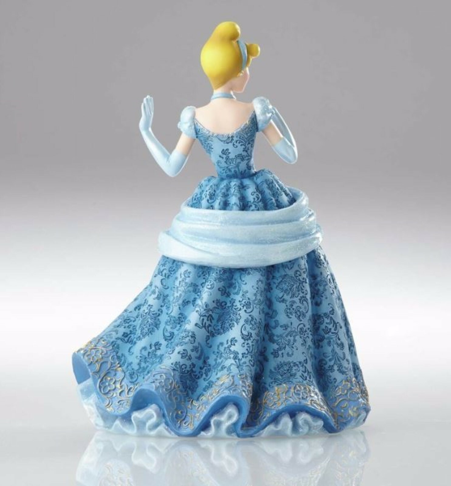 Cinderella's mice would go crazy over this gorgeous gown! A haute couture interpretation of her classic costume, this glittering design features heavy brocade, beautiful draping, and faux jewels – all meticulously sculpted from stone resin.