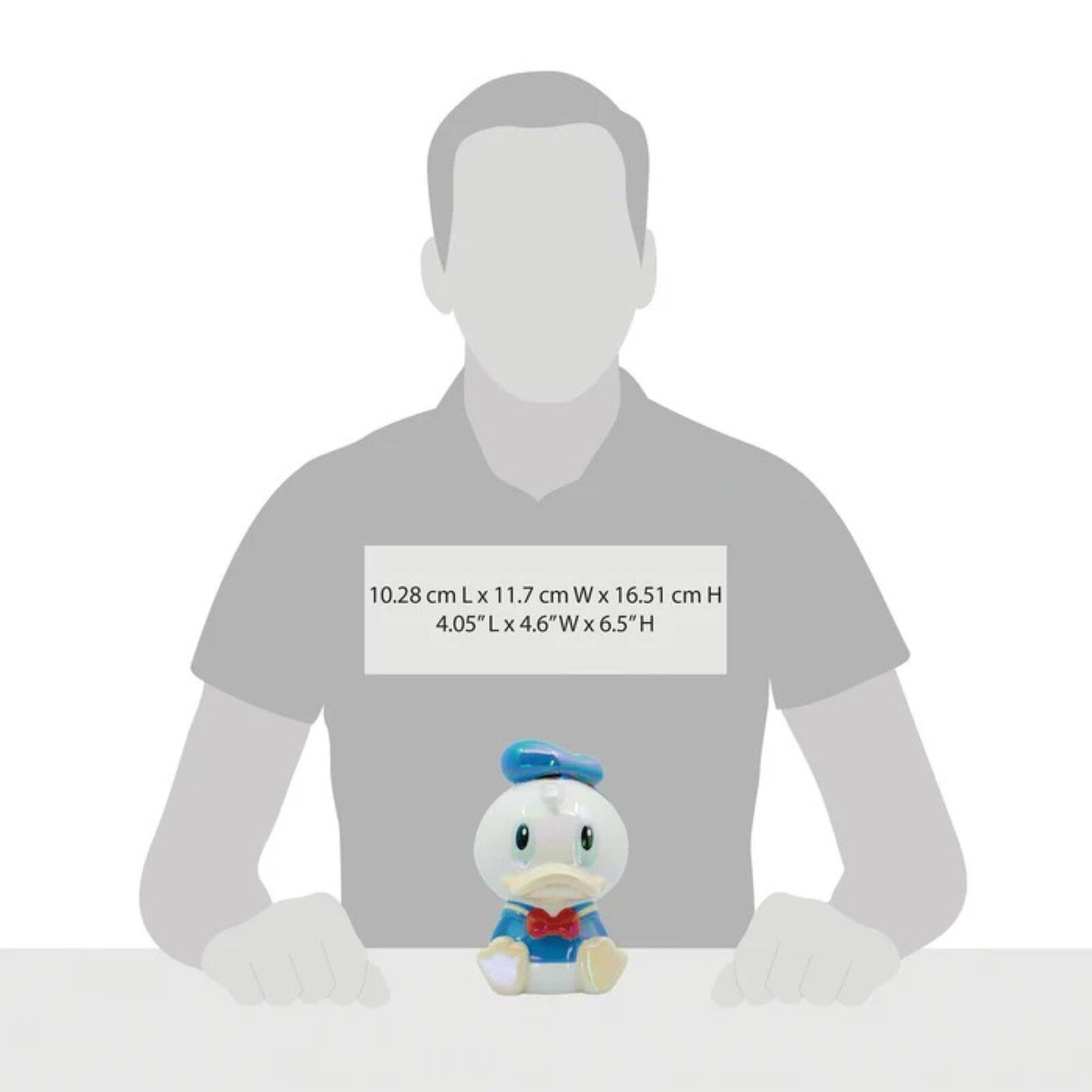 From the Disney Showcase Collection, this adorable ceramic Donald Duck bank is hand painted. A special electroplating process gives Donald Duck a unique and very appealing iridescent shine.