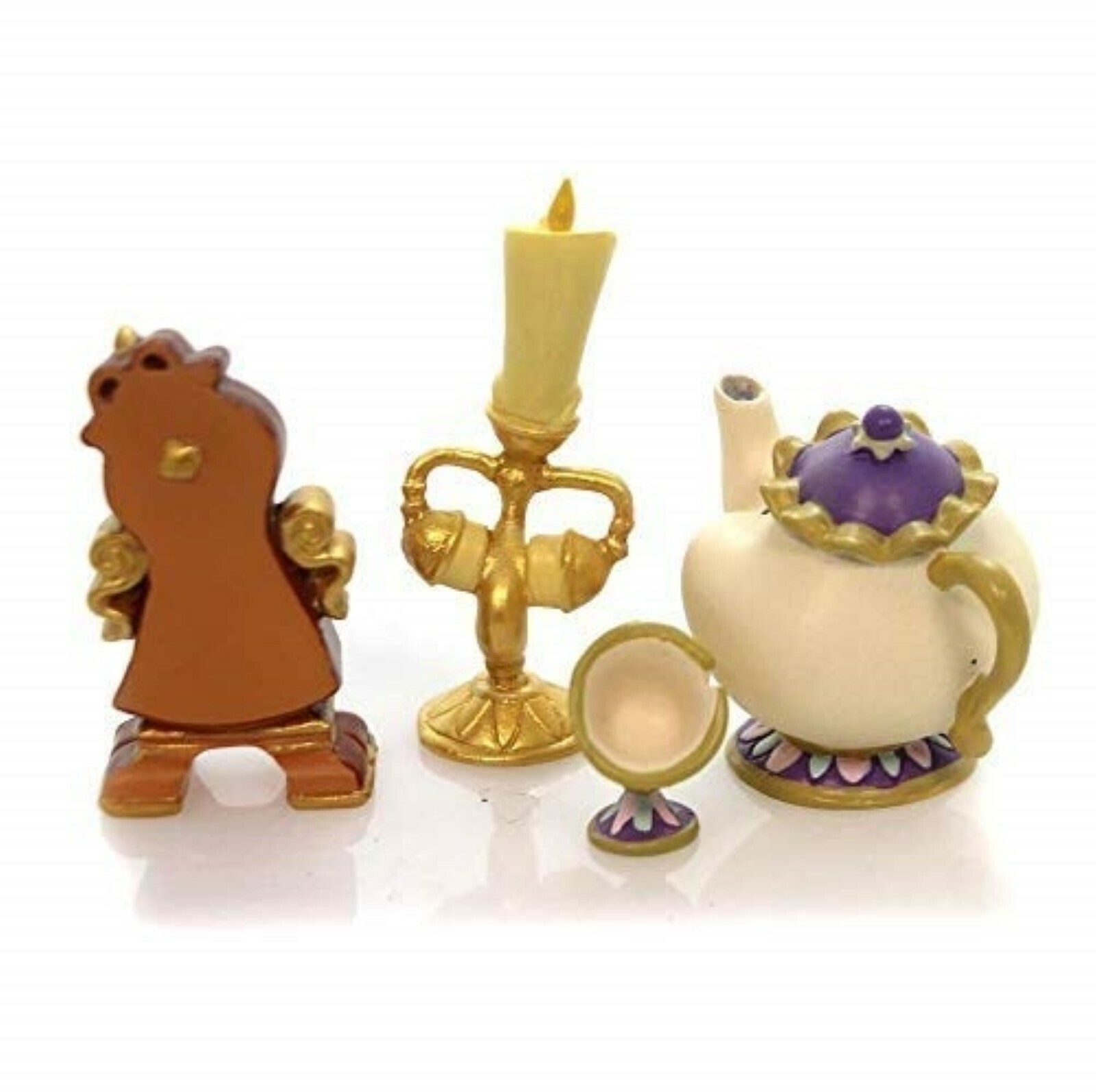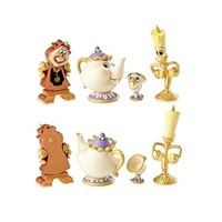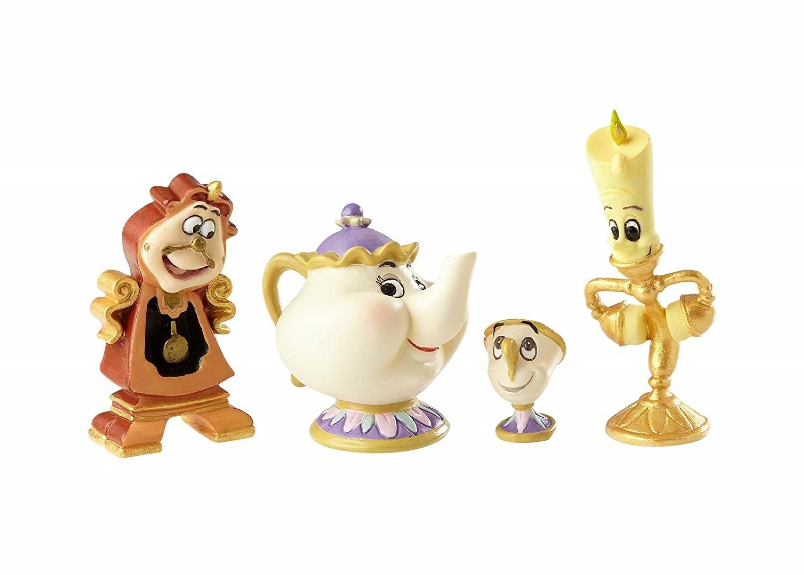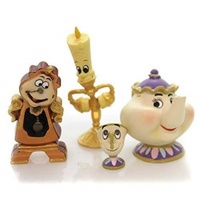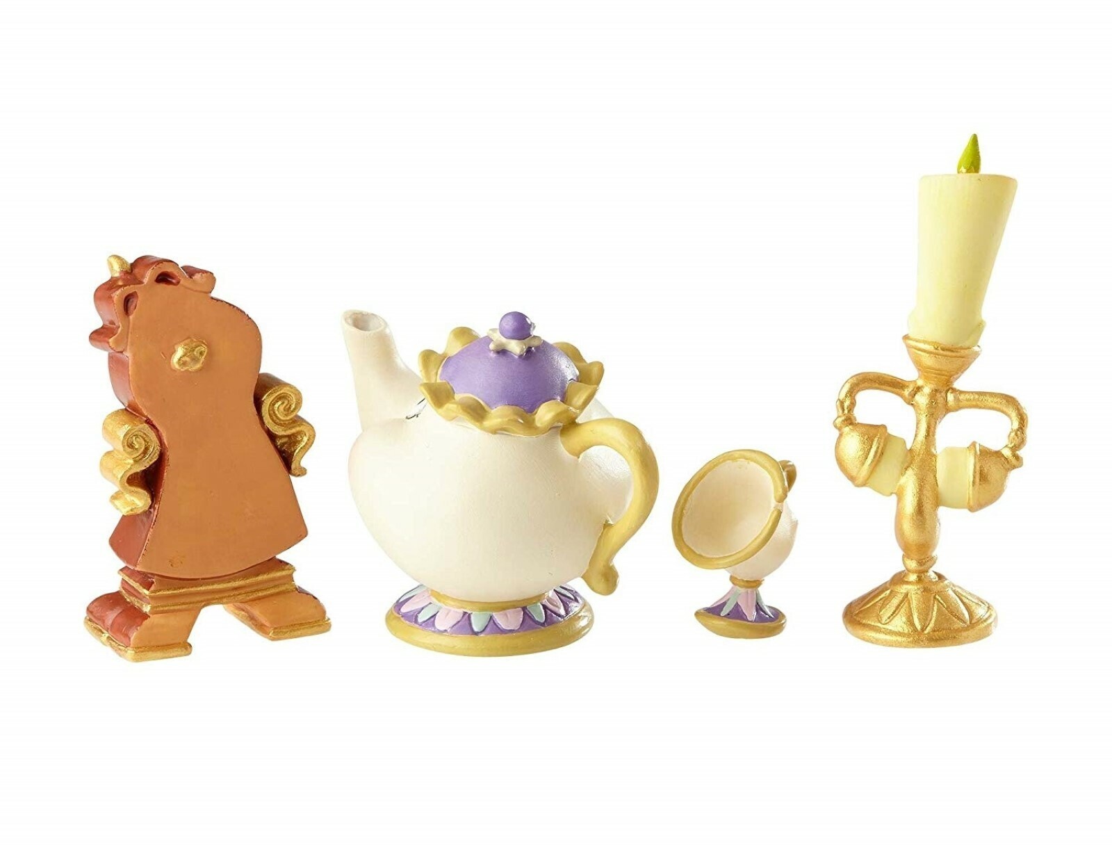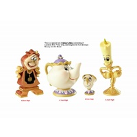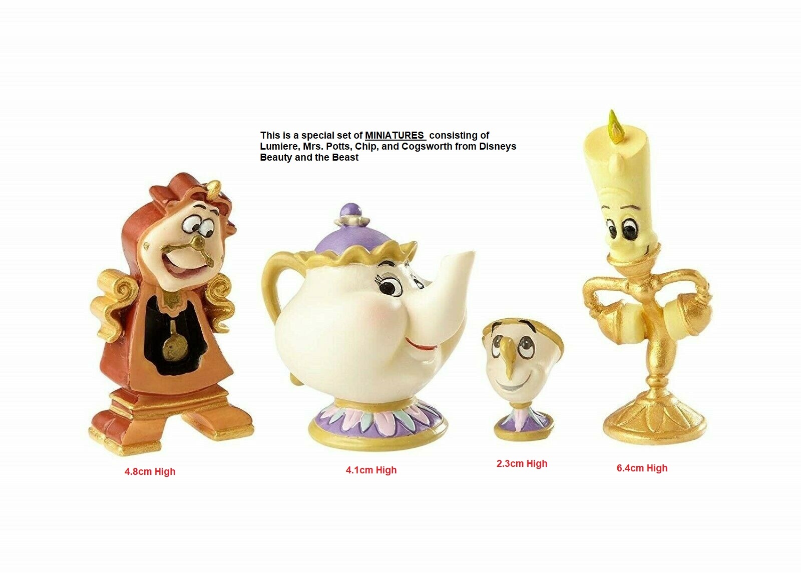 • Set of 4 MINIATURE figurines: Lumiere, Mrs. Potts, Chip, and Cogsworth