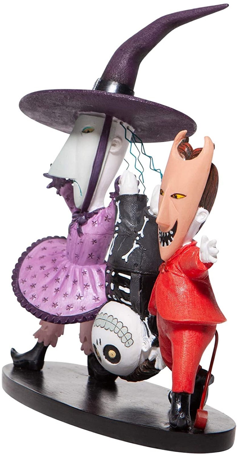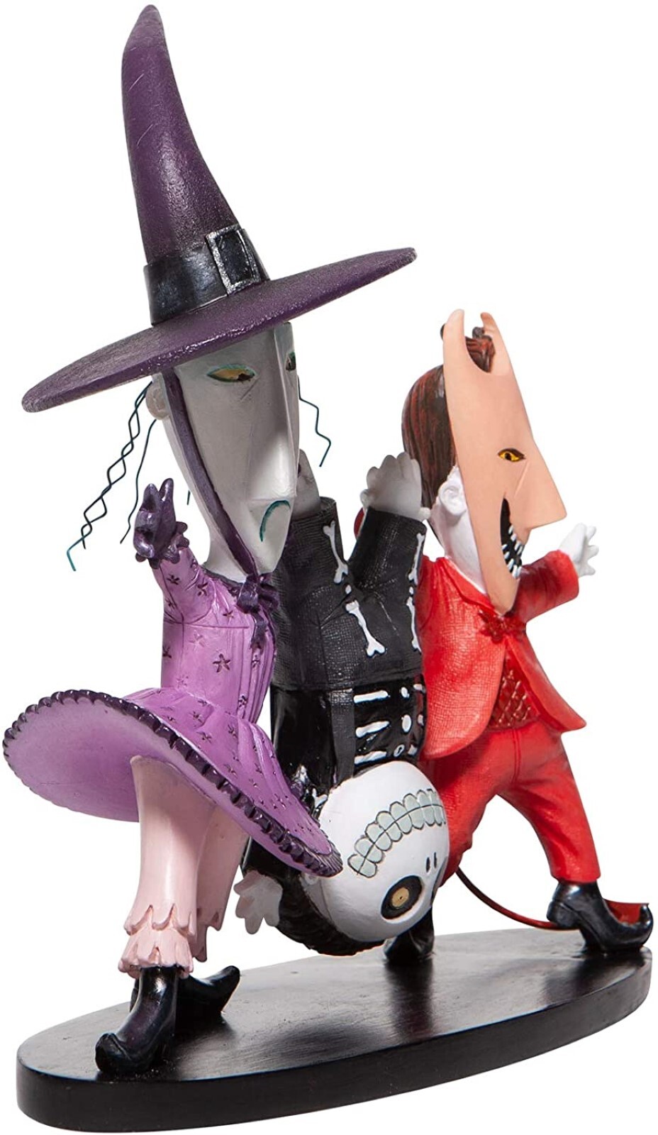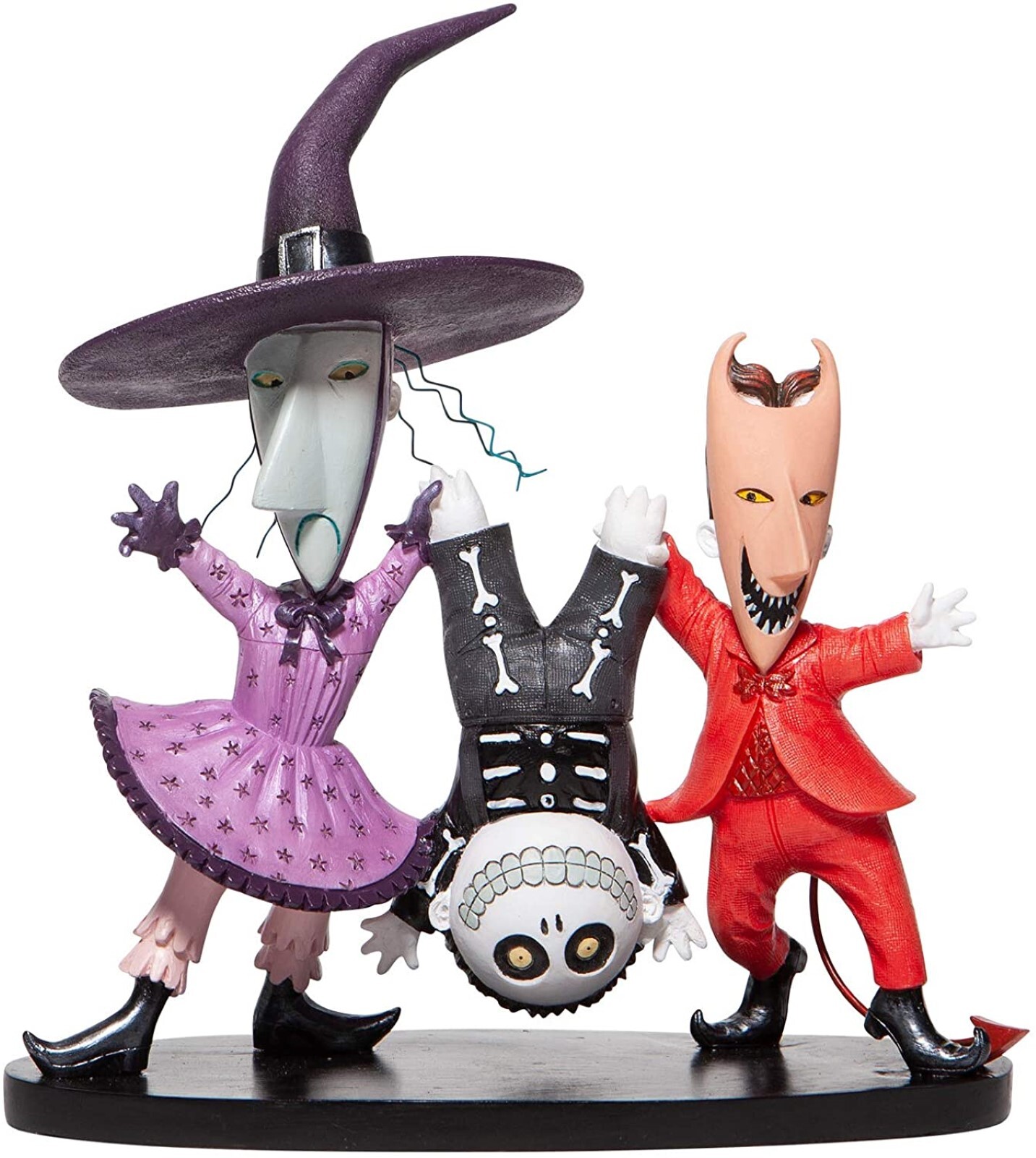 Lock, Shock and Barrel from Tim Burton's The Nightmare Before Christmas is crashing the Halloween ball with mischief and mayhem. Shock's wire hair and Lock's metal devil tail add to the incredible detail of this hand painted sculpture.
