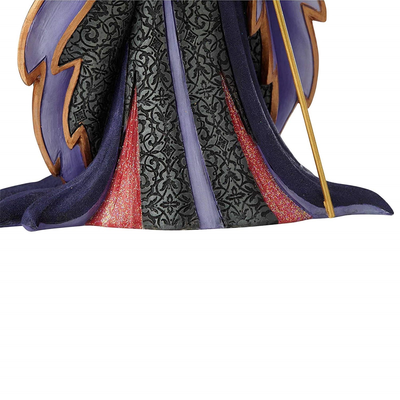 Maleficent strikes a regal pose in this handcrafted design from the Couture de Force collection, her ominous onyx robes reimagined as a satin gown and feathered, floor-length cape. Ready to rule the runway, the fashionable figure holds a golden scepter.