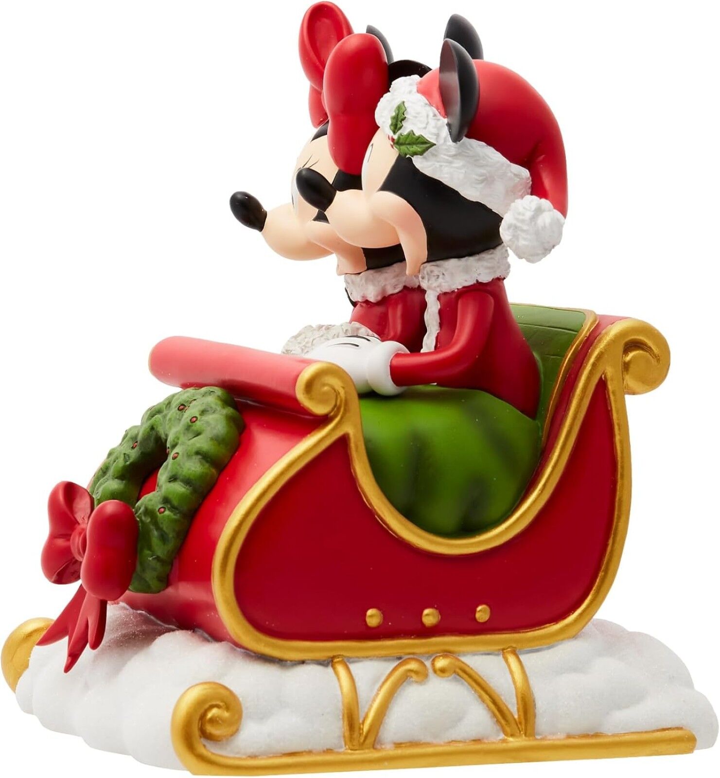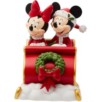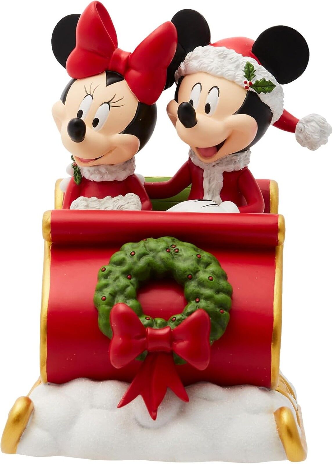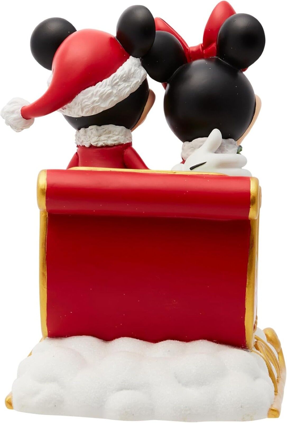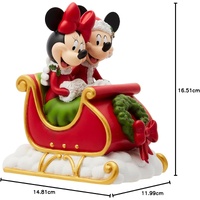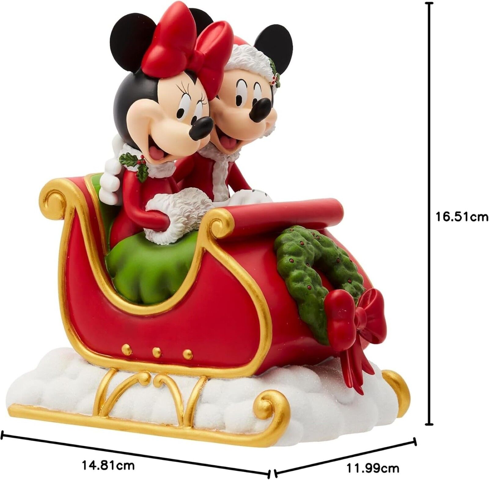 - Features Mickey and Minnie Mouse snuggled together in beautiful Christmas sleigh!