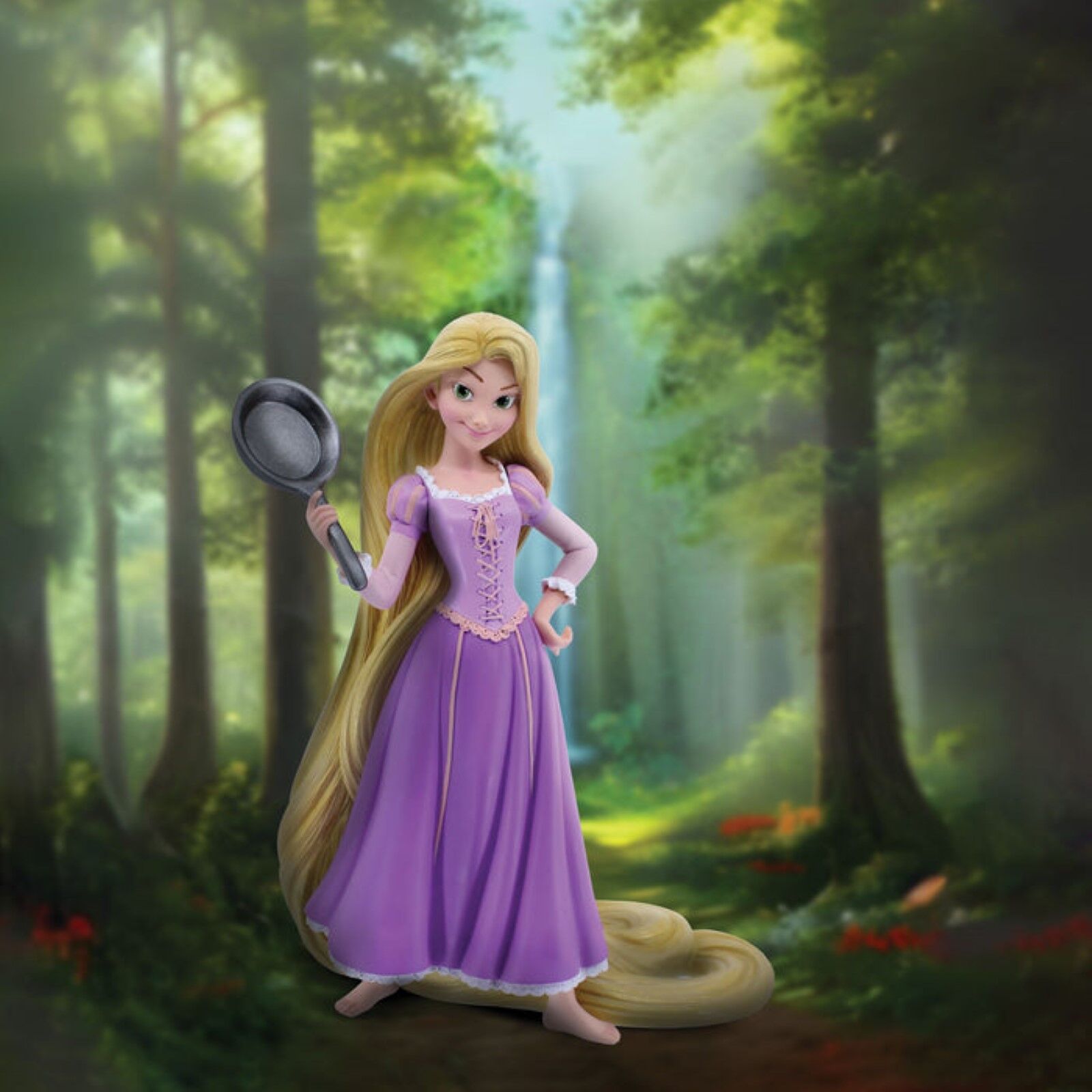 Expertly crafted to capture every detail of the beloved princess, this piece is an exquisite tribute to the Tangled anniversary. Princess Rapunzel takes a defiant stance with her defense tool of choice, the frying pan. Confident and strong, Rapunzel is ready to take on whatever obstacle comes her way