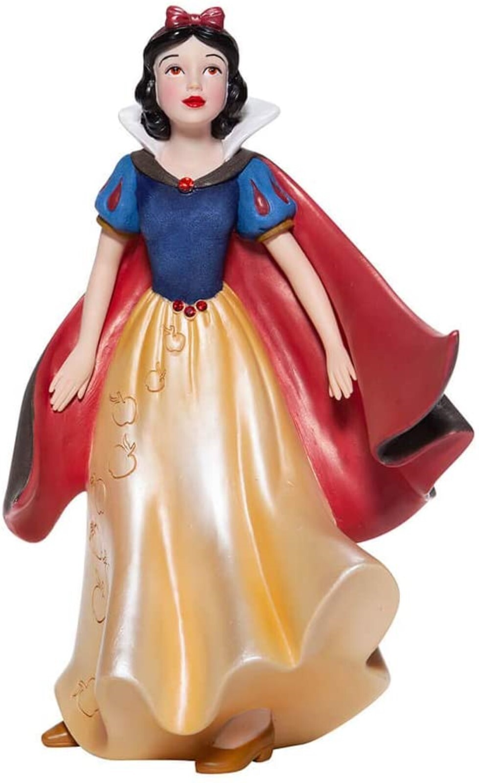 Snow White with her skin fair as snow and lips red as apples follows the wind on a new adventure fit for a princess. Hand-crafted and hand-painted, her iconic outfit shimmers in yellow satins and dark wool felts plussed with red faux gem stones.