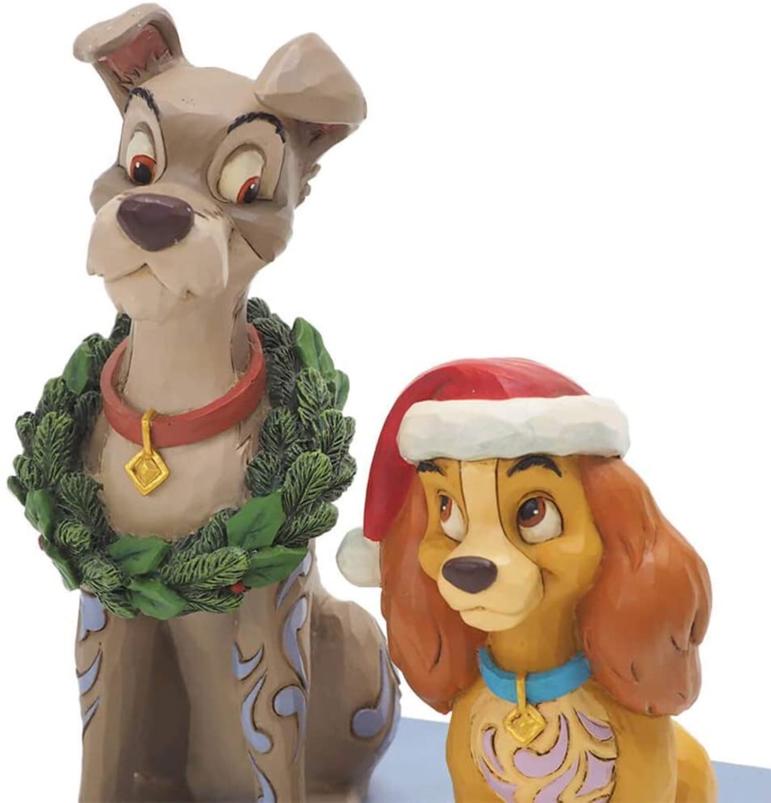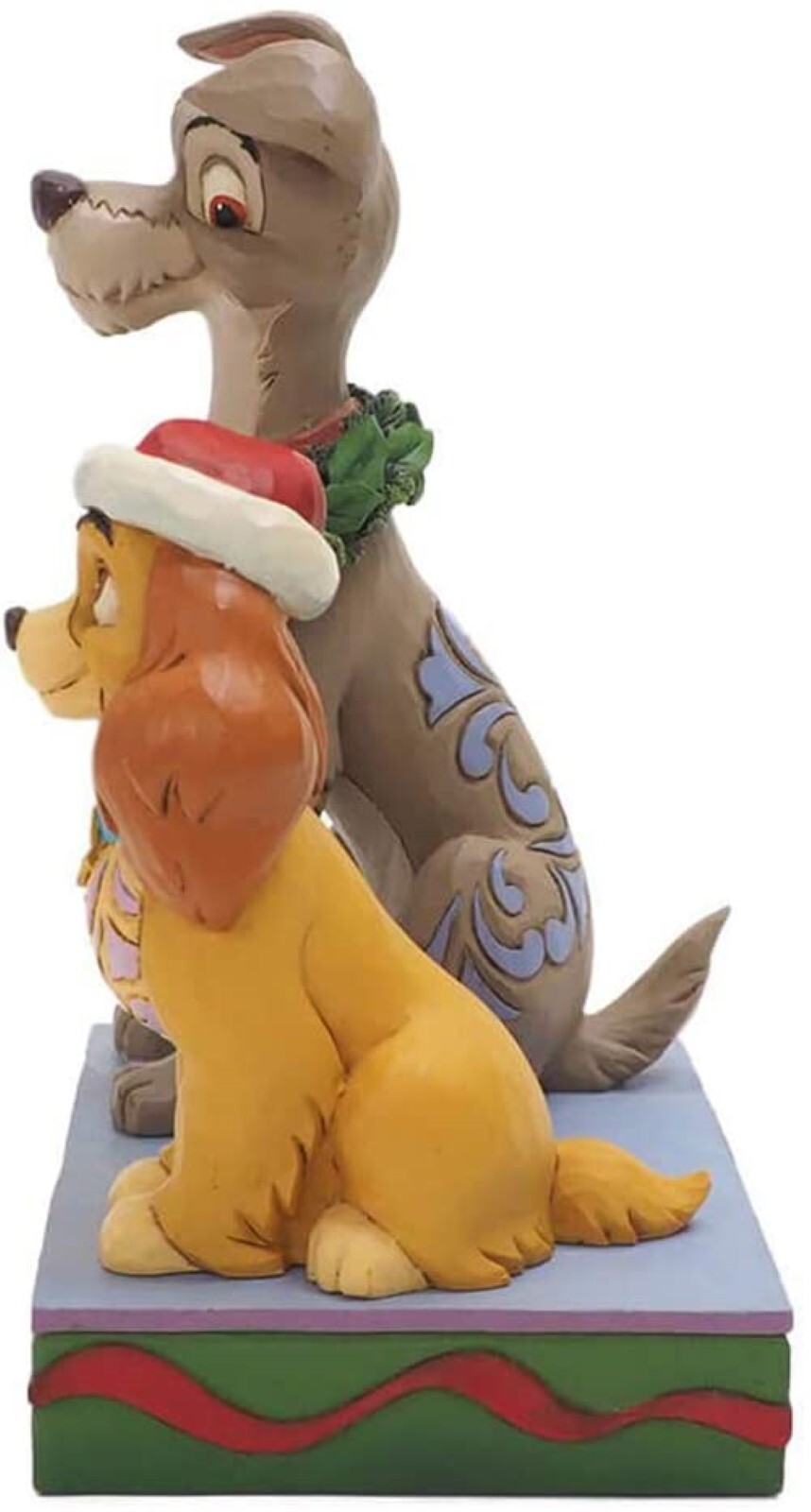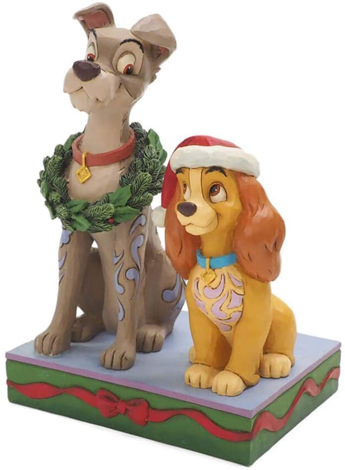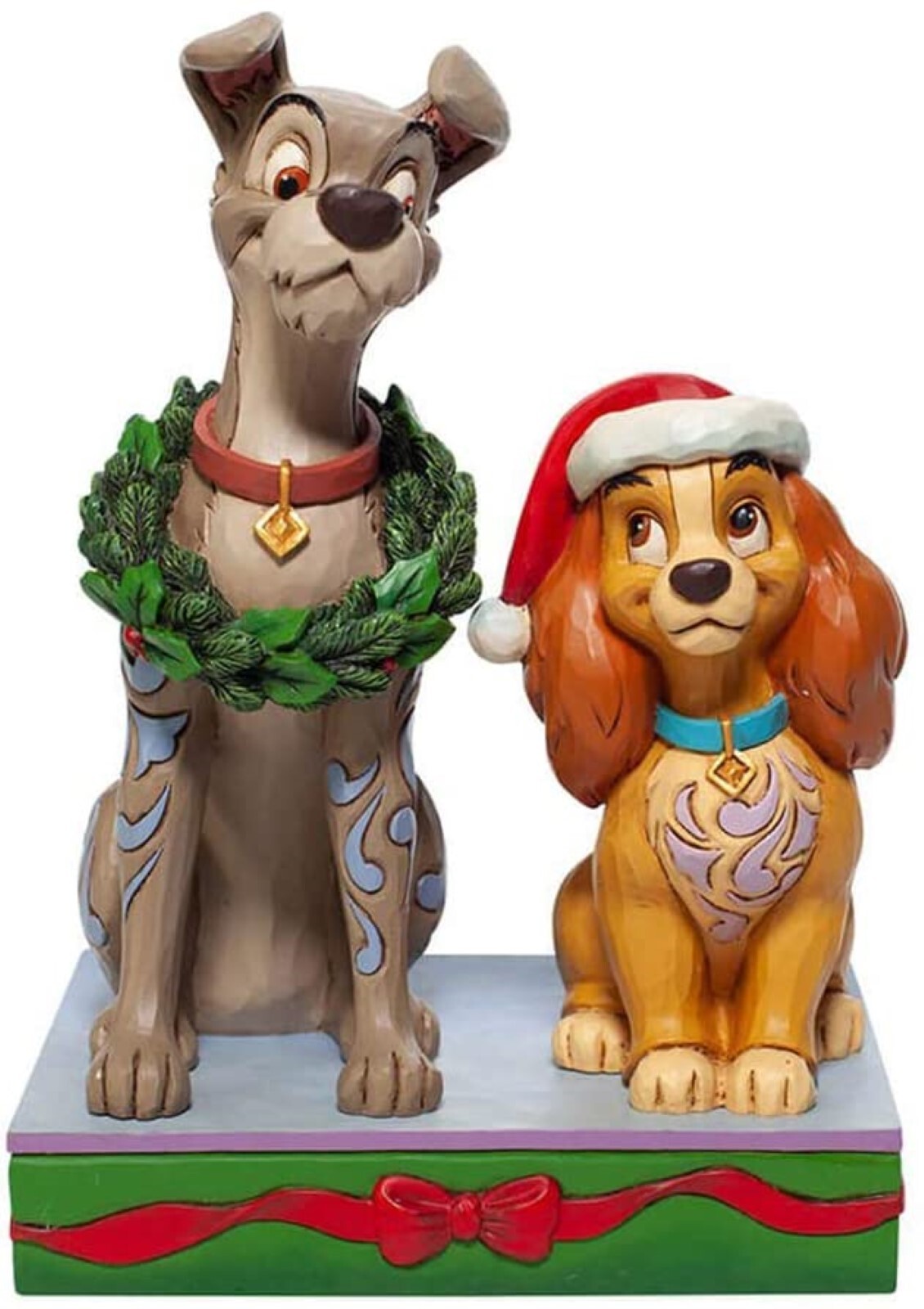 Lady and the Tramp strike a festive pose in this charming statuette. Lady wears a Santa hat strikingly, while Tramp proudly sports a wreath. The romantic pair make the season sweeter. Celebrate the most wonderful time of the year with Disney by Jim Shore
