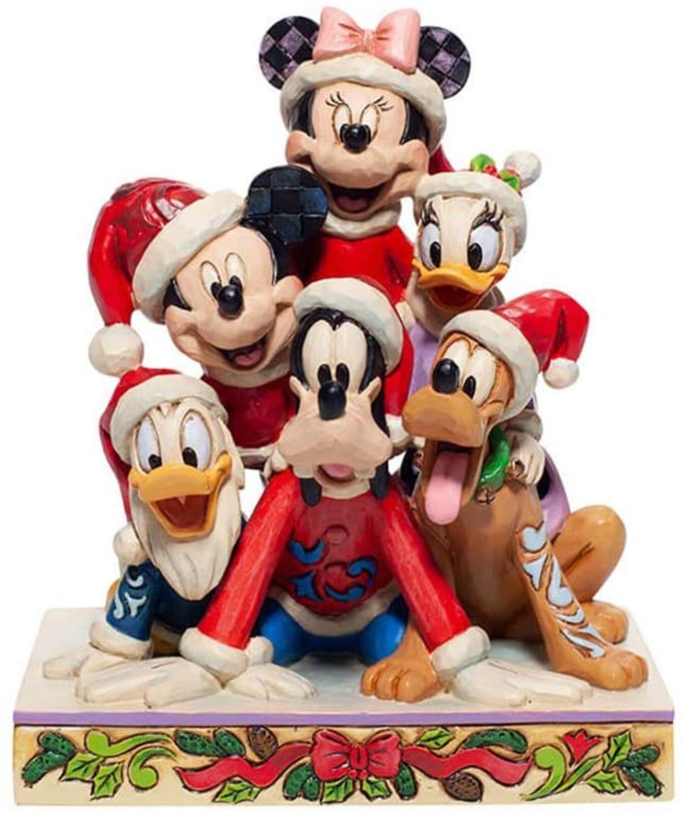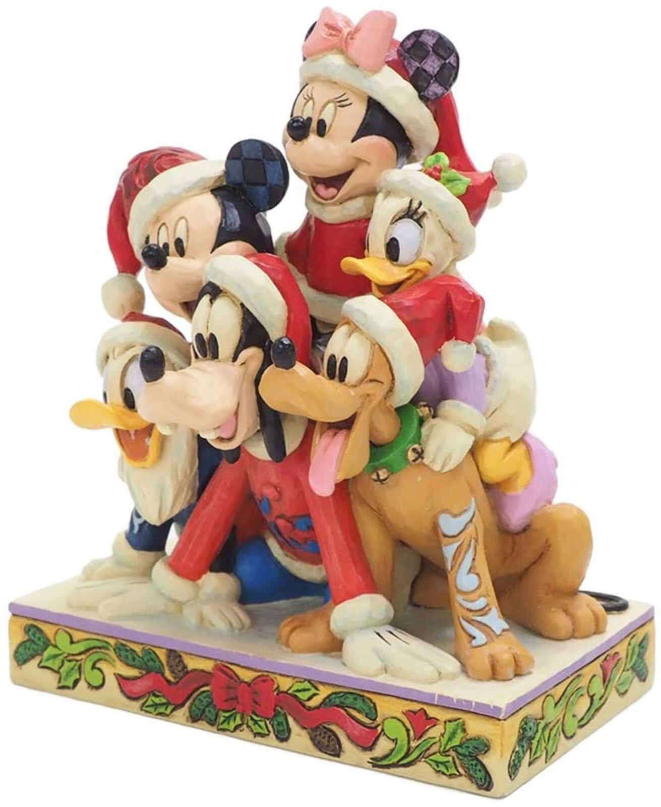 Stacked in a holiday pyramid, Mickey and pals savor a day in the snow. Each wearing a Santa hat, they've discovered the meaning of Christmas and enjoy jolly laughs surrounded by friends. Jim Shore creates a scene sandwiched with nostalgia and love.