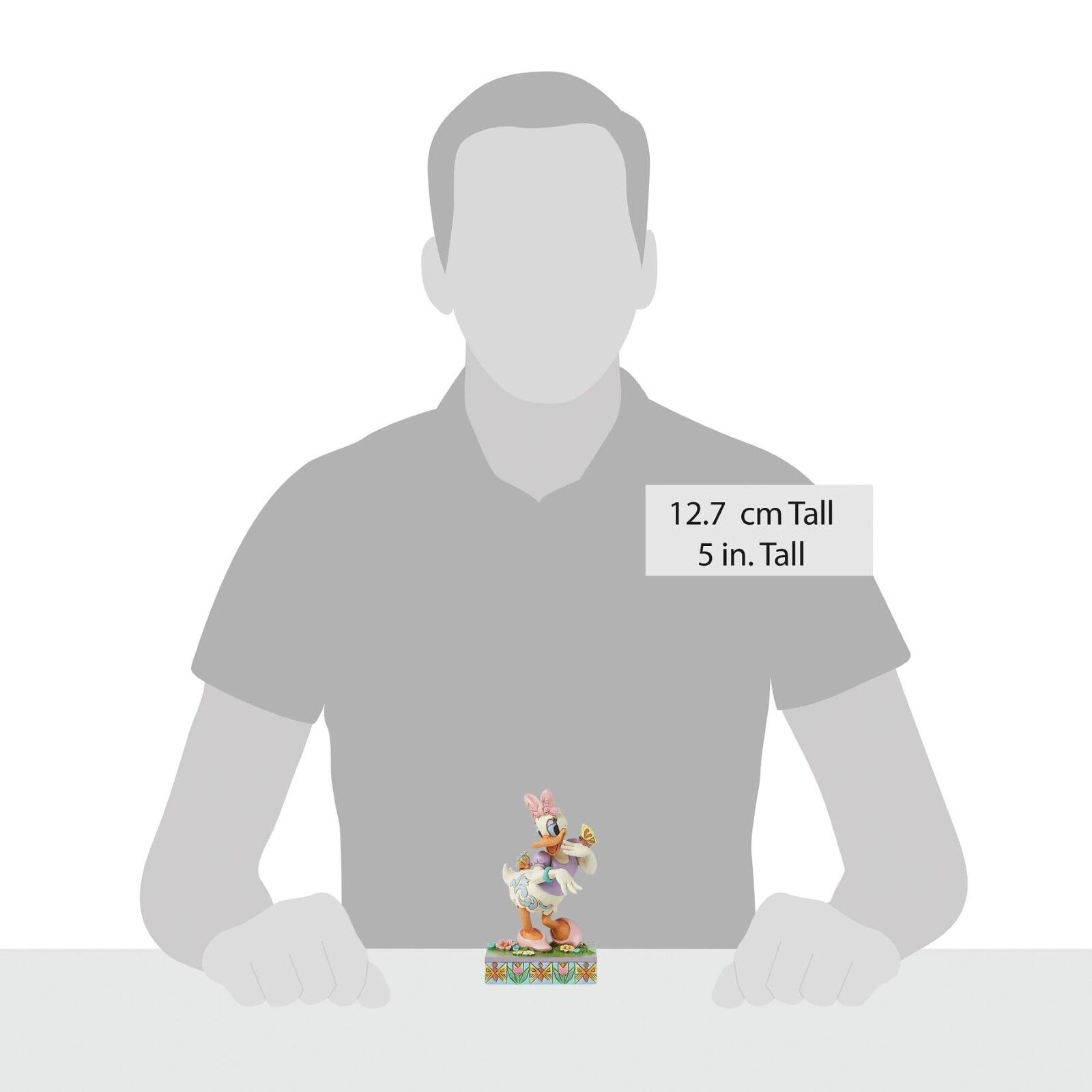 Step into the splendor of spring with this breathtaking Jim Shore figurine of Disney's beloved character, Daisy Duck. Daisy stands in awe on a stage of kaleidoscopic flowers blooming in season as delicate butterflies flutter and land beside her.