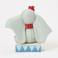 In this heartwarming Jim Shore scene, Dumbo is festively dressed in a red coat and hat as he joyfully decorates a miniature Christmas tree with a real working bell in his trunk. Capture the spirit of the season with Dumbo's playful spirit.