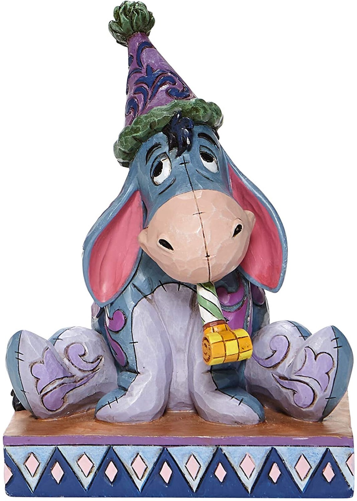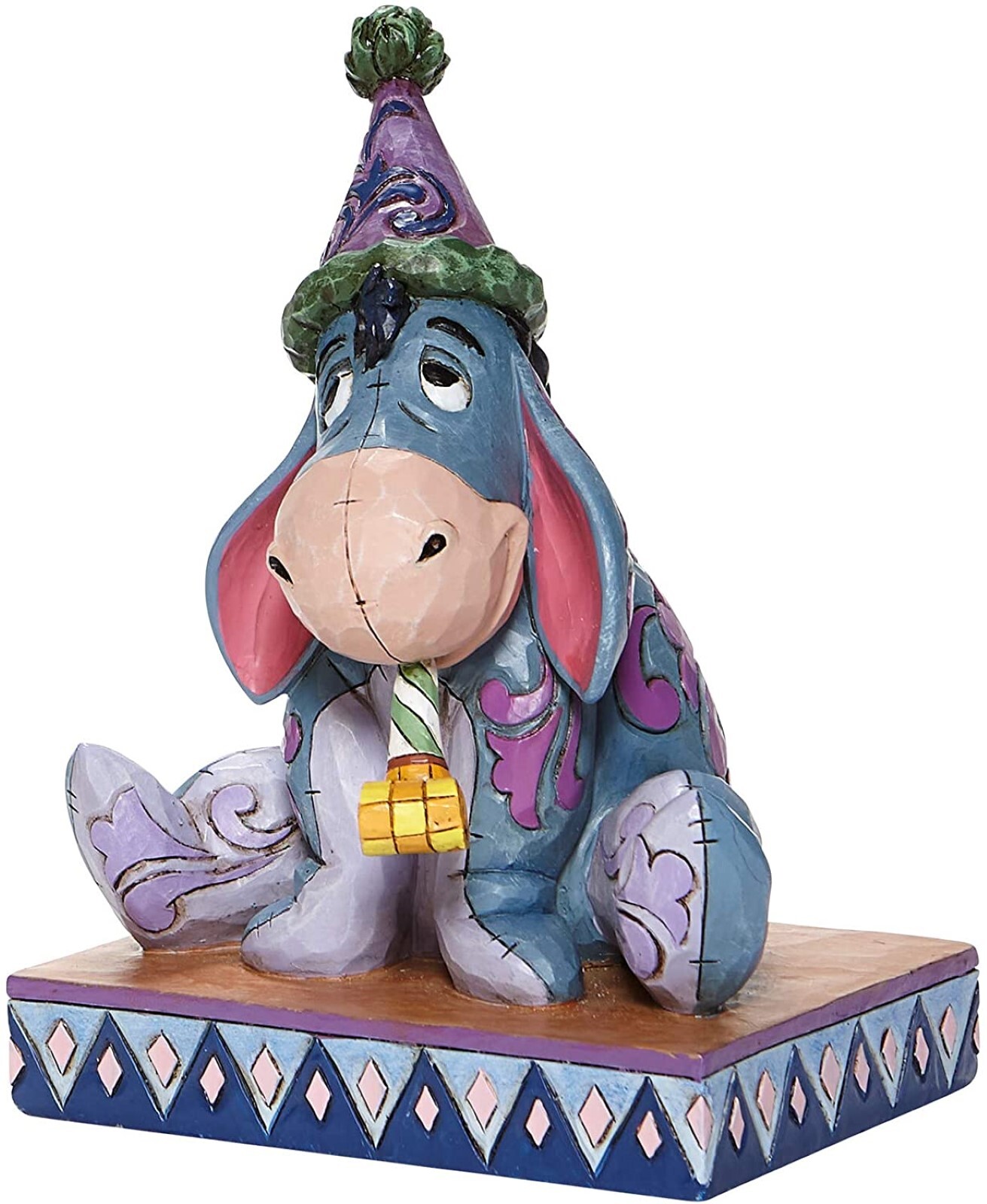 Winnie-the-Pooh's gloomy friend is trying to get into the birthday spirit as he wears his party hat and toots his horn. This birthday Eeyore is hand-crafted in stone resin and hand-painted with Jim's signature rosemaling design.