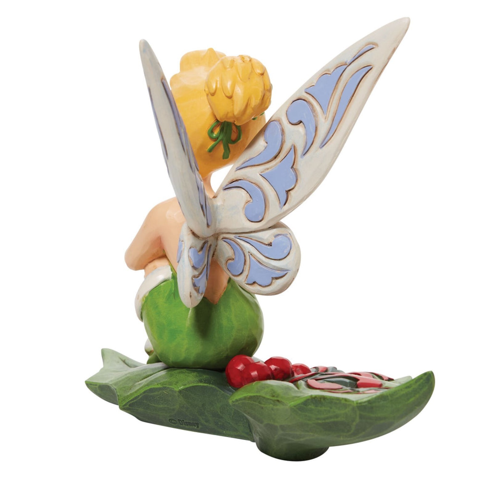 Sitting atop a bushel of holly, Tinkerbell peers over Neverland with a caring Christmas eye. Watching over the Lost Boys, Tink enjoys a season spent with friends in this Jim Shore classic.