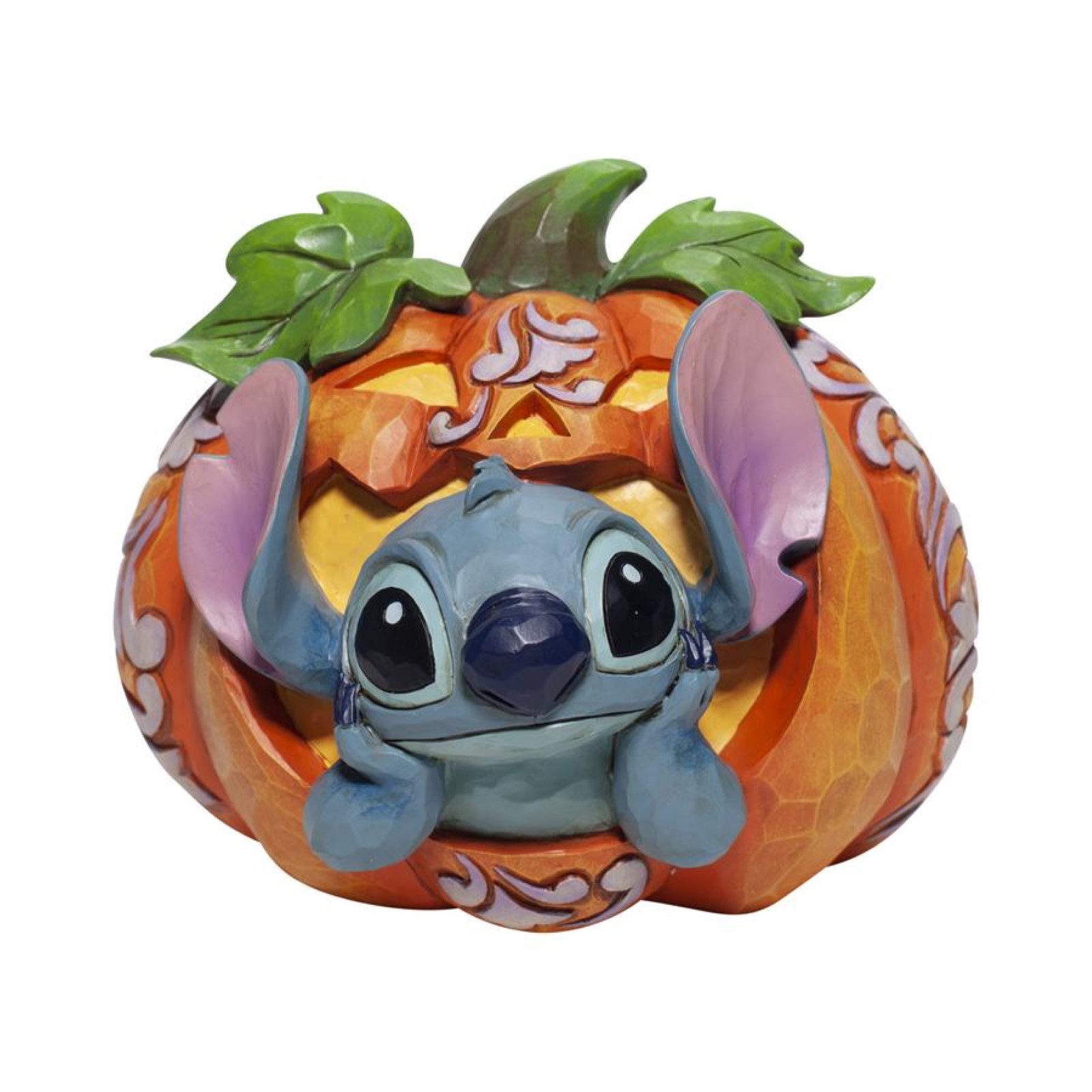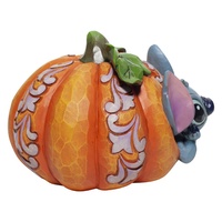 Stitch hasn't been on Earth very long but he's managed to embrace the Halloween spirit. Bursting out of a Jack-o-Lantern the playful alien poses. Bring home some holiday spirit with this too sweet to be spooky Disney design by Jim Shore.