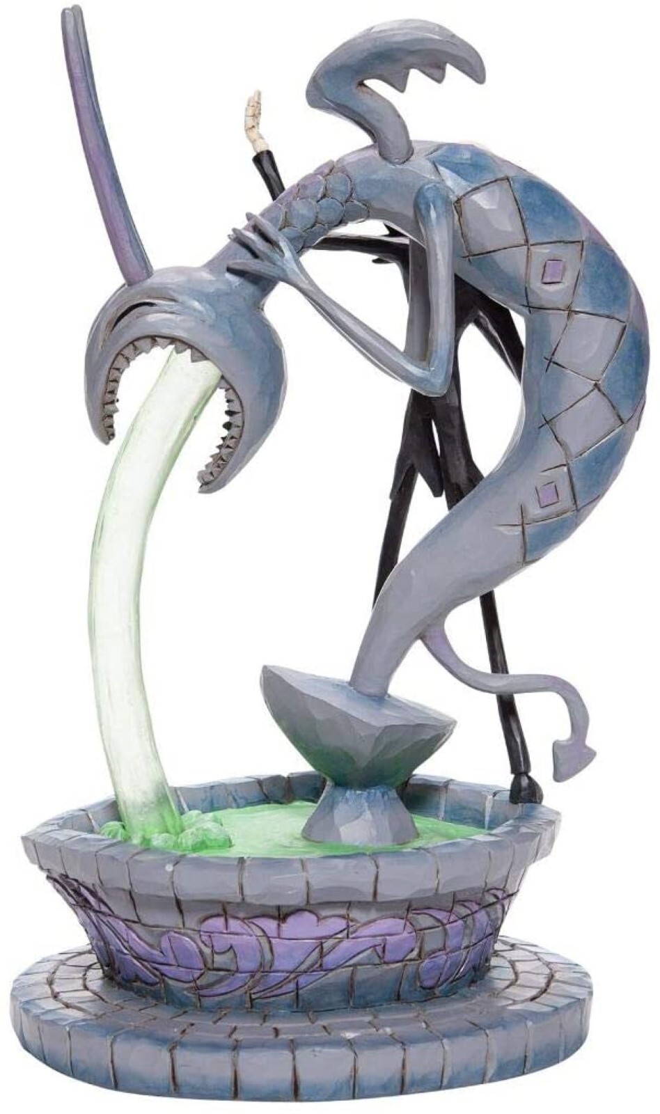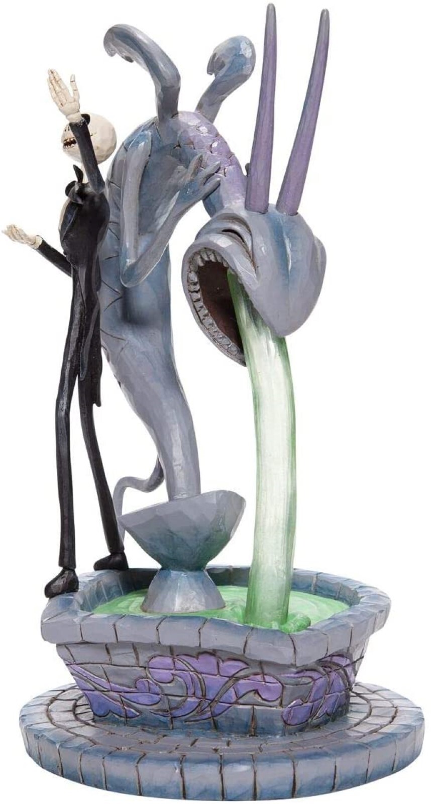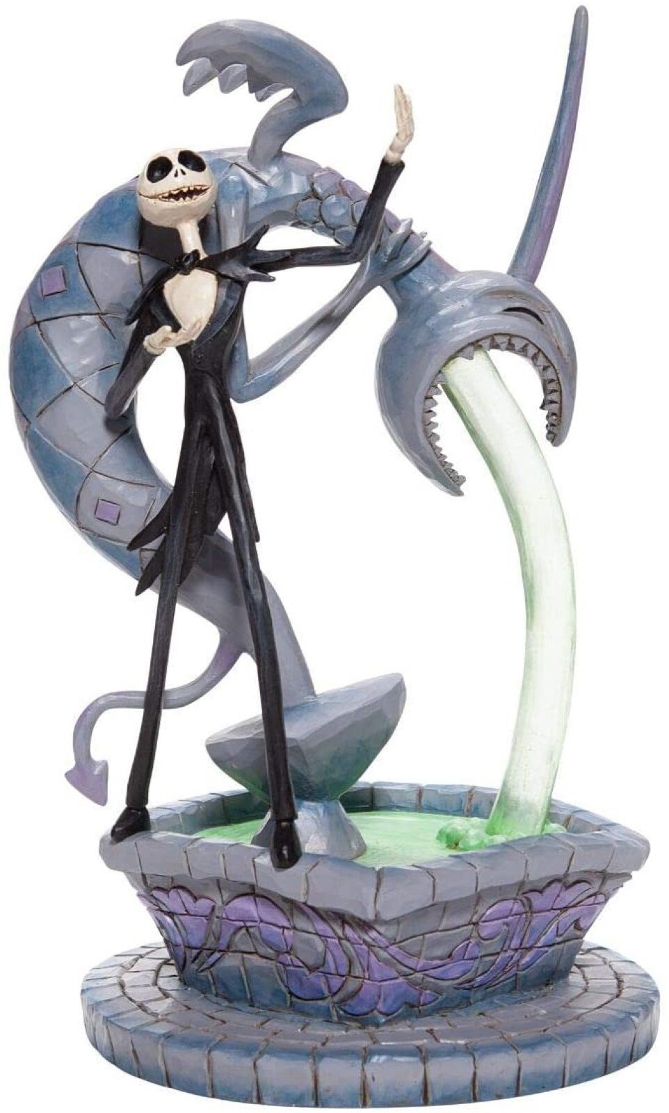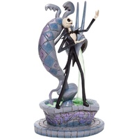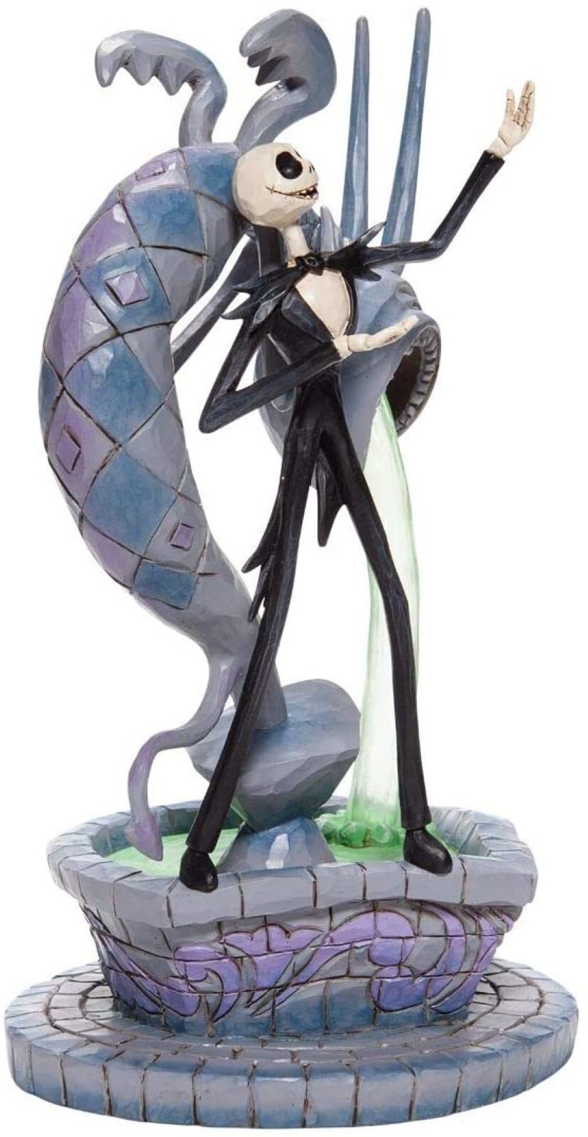 Standing at the edge of the Halloween Town fountain, Jack Skellington welcomes you home. With ghouls, ghosts, and skeleton-led show tunes, it's a fantastic place to live. Have a little Halloween in your everyday with this Jim Shore design.