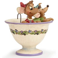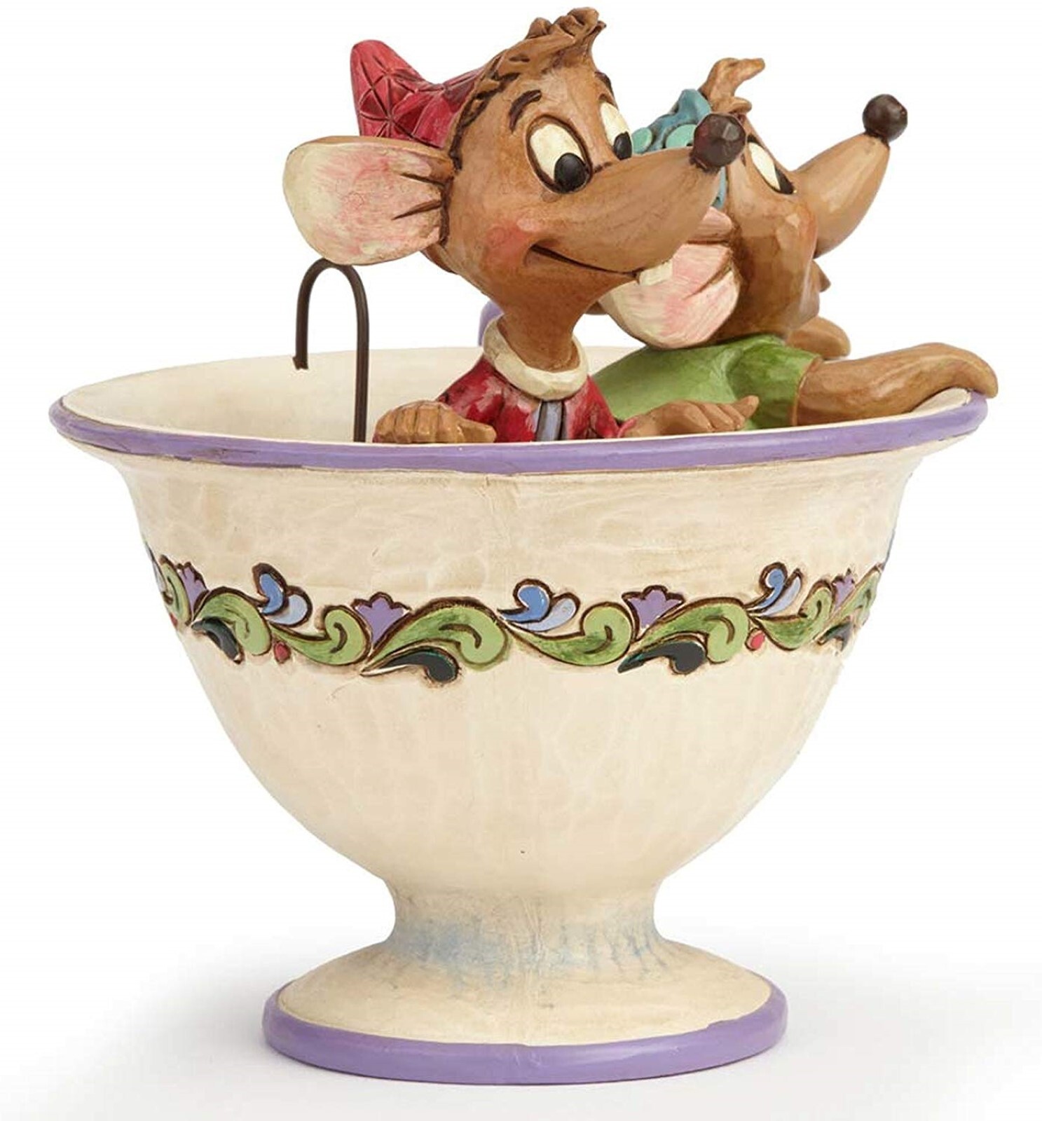 Jaq and Gus peer over the top of Lady Tremaine's teacup as they devise a plan to steal the key they need to free Cinderella. This charming 4.25" design is handcrafted from stone resin and hand-painted with colorful rosemaling motifs.