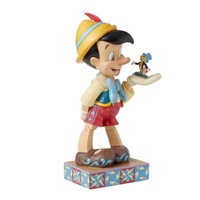 Jim Shore brings to life the touching bond between Pinocchio and Jiminy Cricket, capturing the essence of their enduring friendship. Pinocchio holds Jiminy close, reminding us of the power of guidance on life's journey.