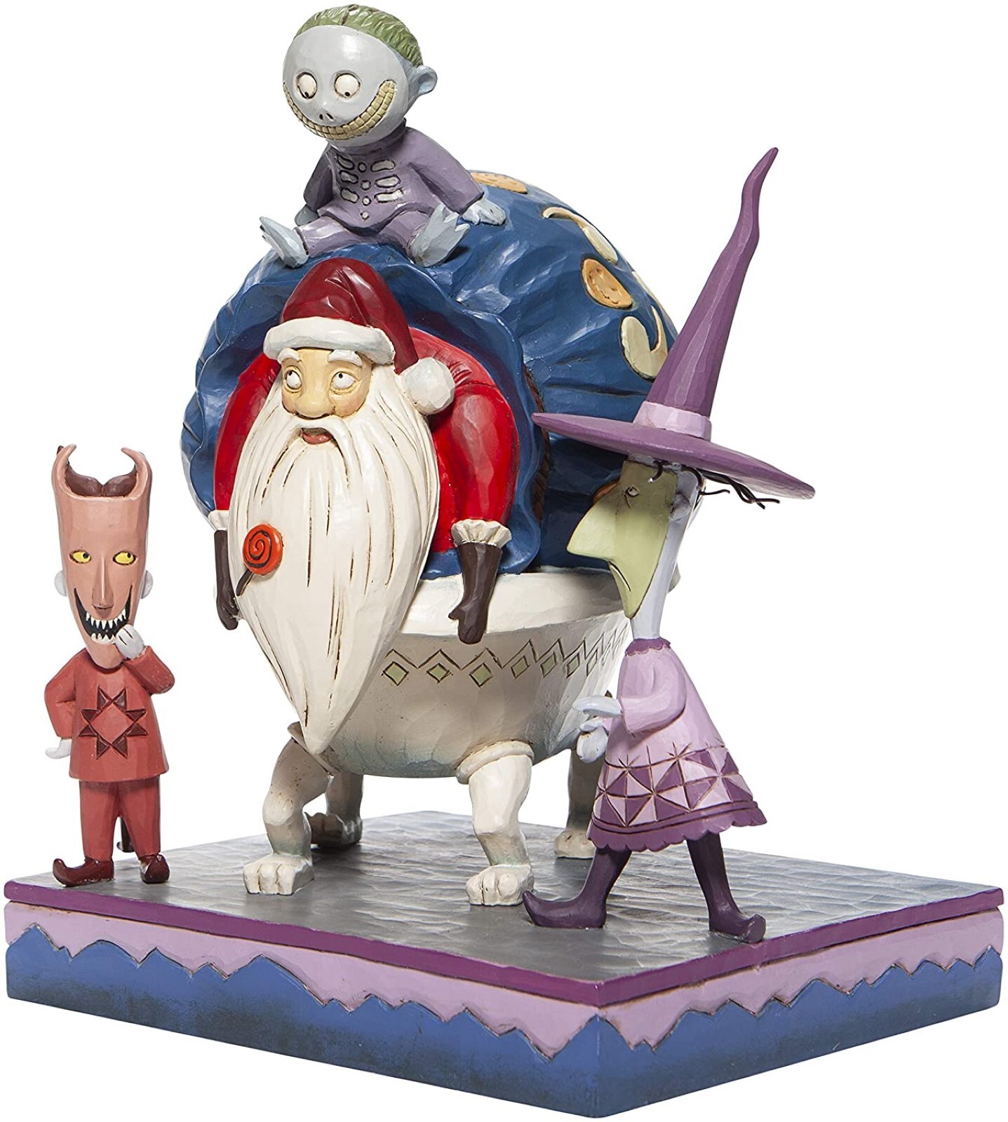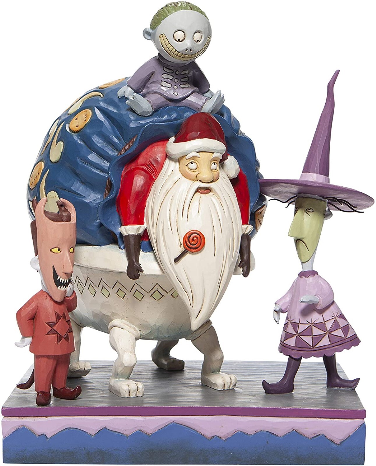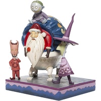 Lock, Shock, and Barrel have cancelled Christmas. The mischievous brothers have kidnapped Santa himself and are now subjecting him to who knows what! With sinister smiles to make Jack Skellington proud, this Jim Shore effigy delights and frights.