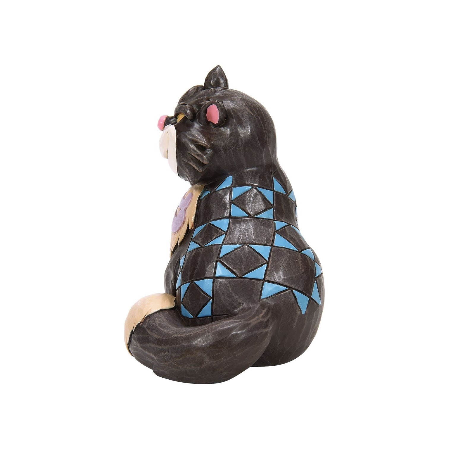 Lucifer the cat is Lady Tremaine's evil sidekick. With a wicked personality, Lucifer is cruel to Cinderella and her mice friends. This Jim Shore design features the cat's signature sneer with rosemale and patchwork patterning on his fur.