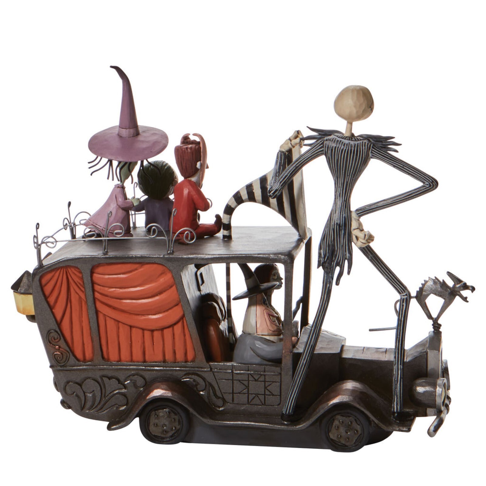 Jim Shore’s unmistakable style combines classic Disney characters with designs inspired by folk art forms of quilting, rosemaling and tole painting. The triumphant heroes of Halloween Town pose with the Mayor's car. Jack Skellington leads the way as he takes Halloween town residents onto Christmas town.