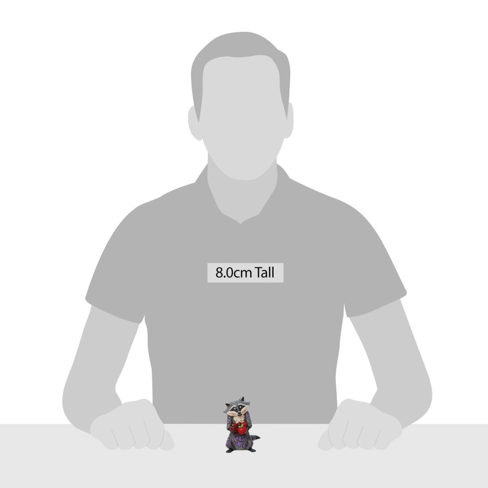 Meeko, the beloved racoon from Disney's 1995 animated feature film, Pocahontas, loves food, especially John Smith's biscuits. In this Jim Shore miniature, the resourceful scavenger has found a bounty of apples. His face lights up at his snack.