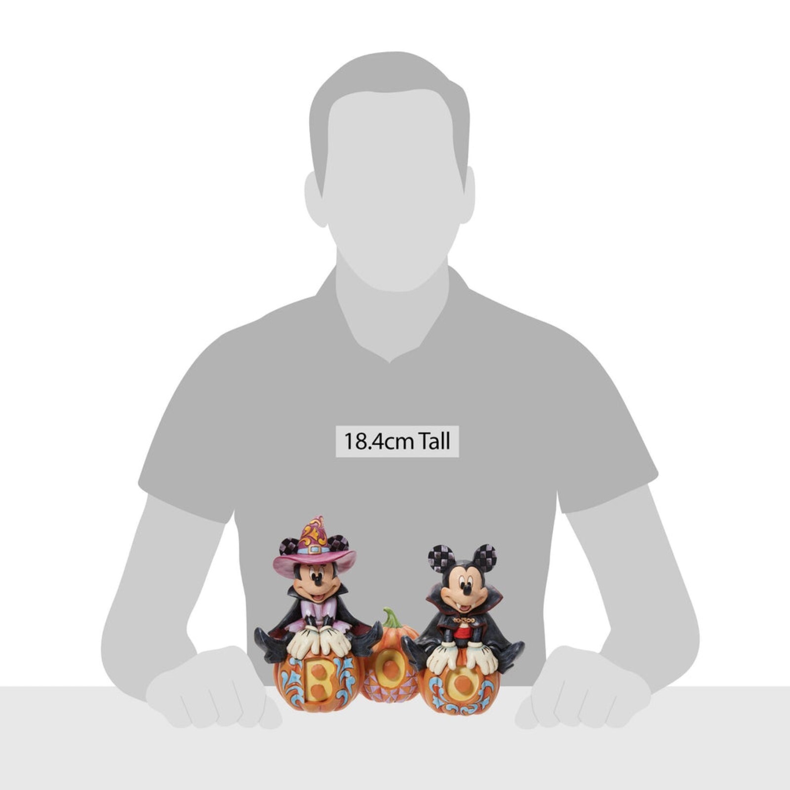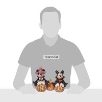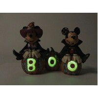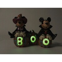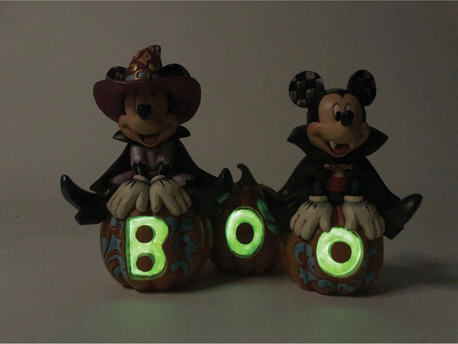 Leap into fall with your favorite mice, Disney's Mickey and Minnie Mouse! Jumping over carved pumpkins that form the glow in the dark word "Boo"! The pair don wide smiles as Minnie is a darling witch while Mickey is the count of cuteness.