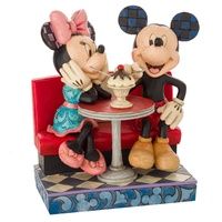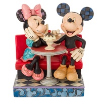 A joyful Mickey and Minnie Mouse In Soda Shop decorated with unique rosemaling on this beautifully detailed figurine.
