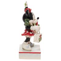 Disney comes home for the holidays with this festive figurine by Jim Shore. Minnie Mouse is an icon of fashion and friendliness this year as she completes her Christmas shopping. Boasting with bags, she's eager to share the giving spirit with you.
