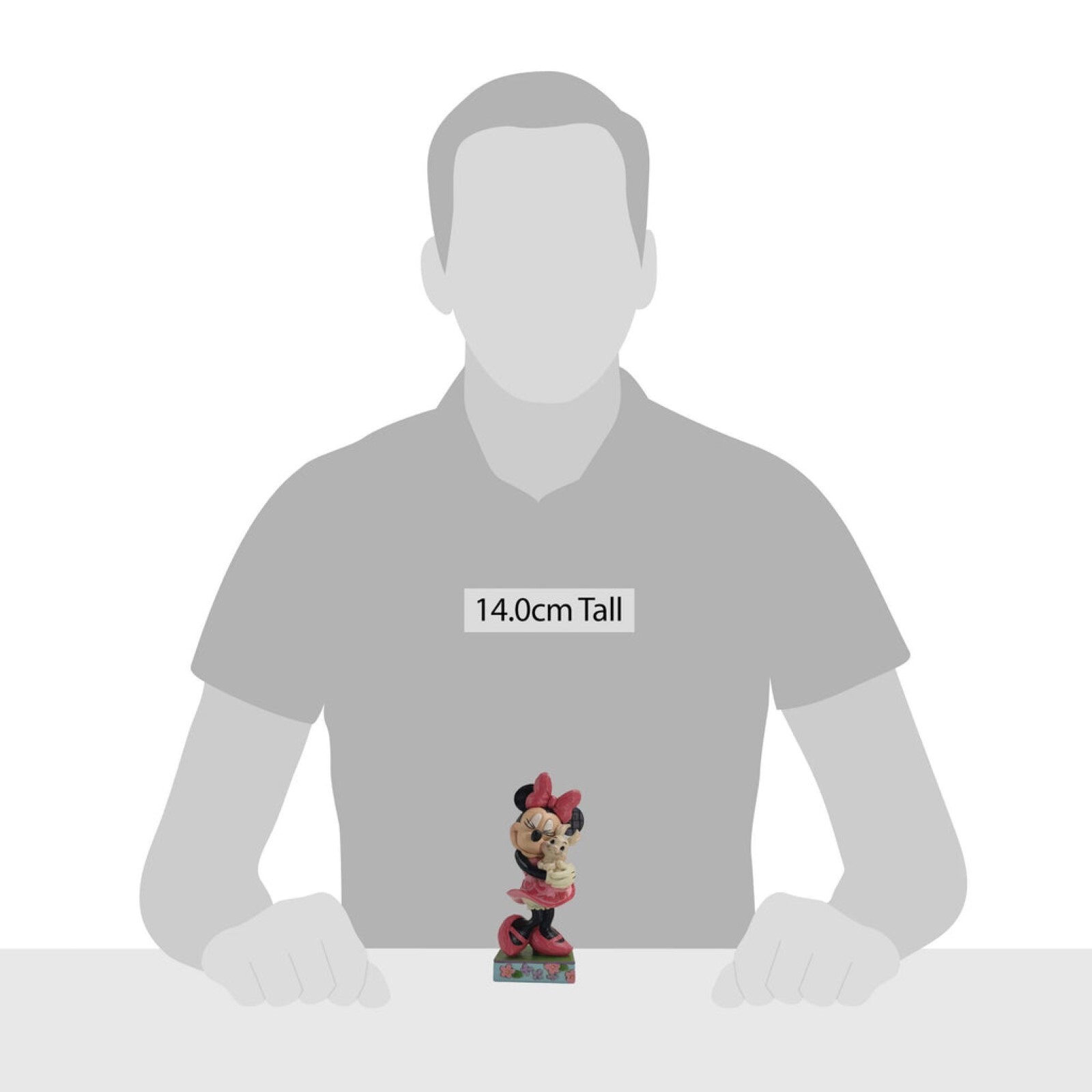 Pretty in pink, Minnie Mouse giddily ventures outside to celebrate Spring. With a flower patterned base, this colorful bust is as sweet as it is stylish. Minnie lovingly hugs a bunny in her arms while wearing a JIm Shore rosemaled dress.