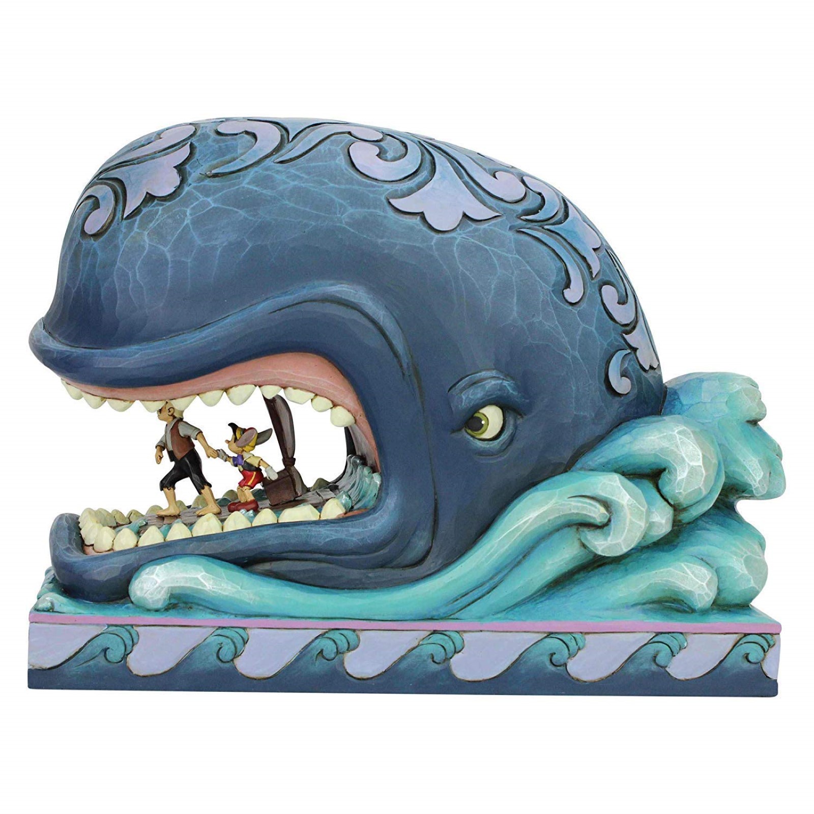 Holding his sons hand, Geppetto calms Pinocchio's fears even in the mouth of a beast. Monstro the giant whale looks absolutely terrifying in this Jim Shore figurine, even when covered in ravishing rosemaling.