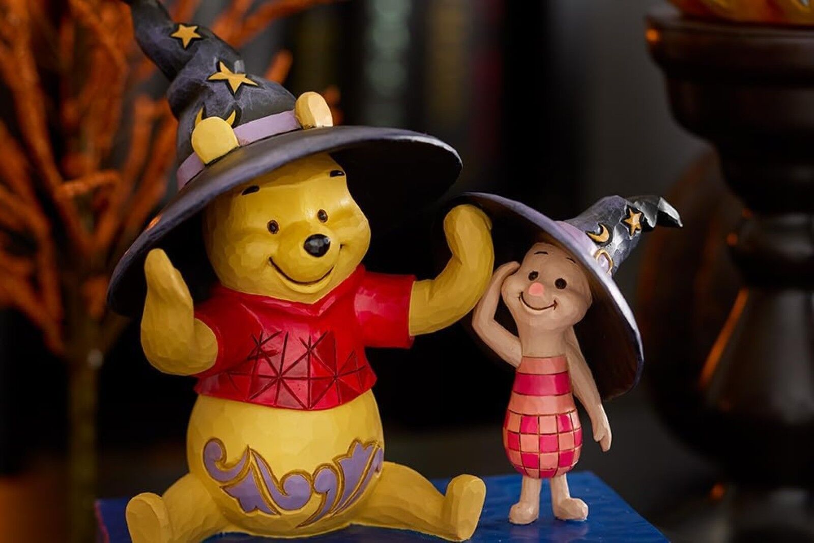 In this delightful Jim Shore delightful design, Pooh Bear and Piglet don witch hats as they stand hand in hand. Together, they embrace the Halloween spirit with joy and camaraderie, sharing in the whimsical fun of the season.