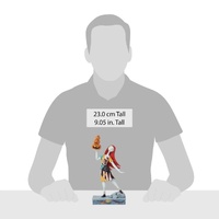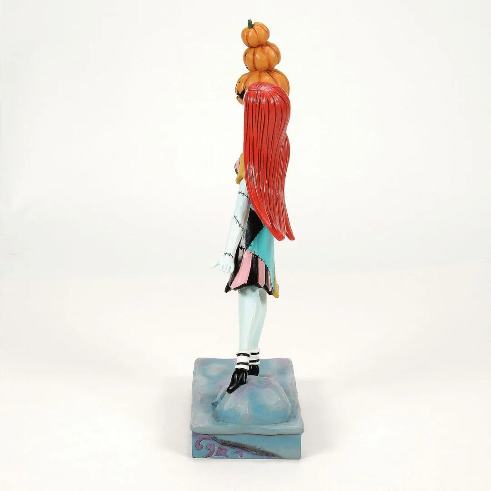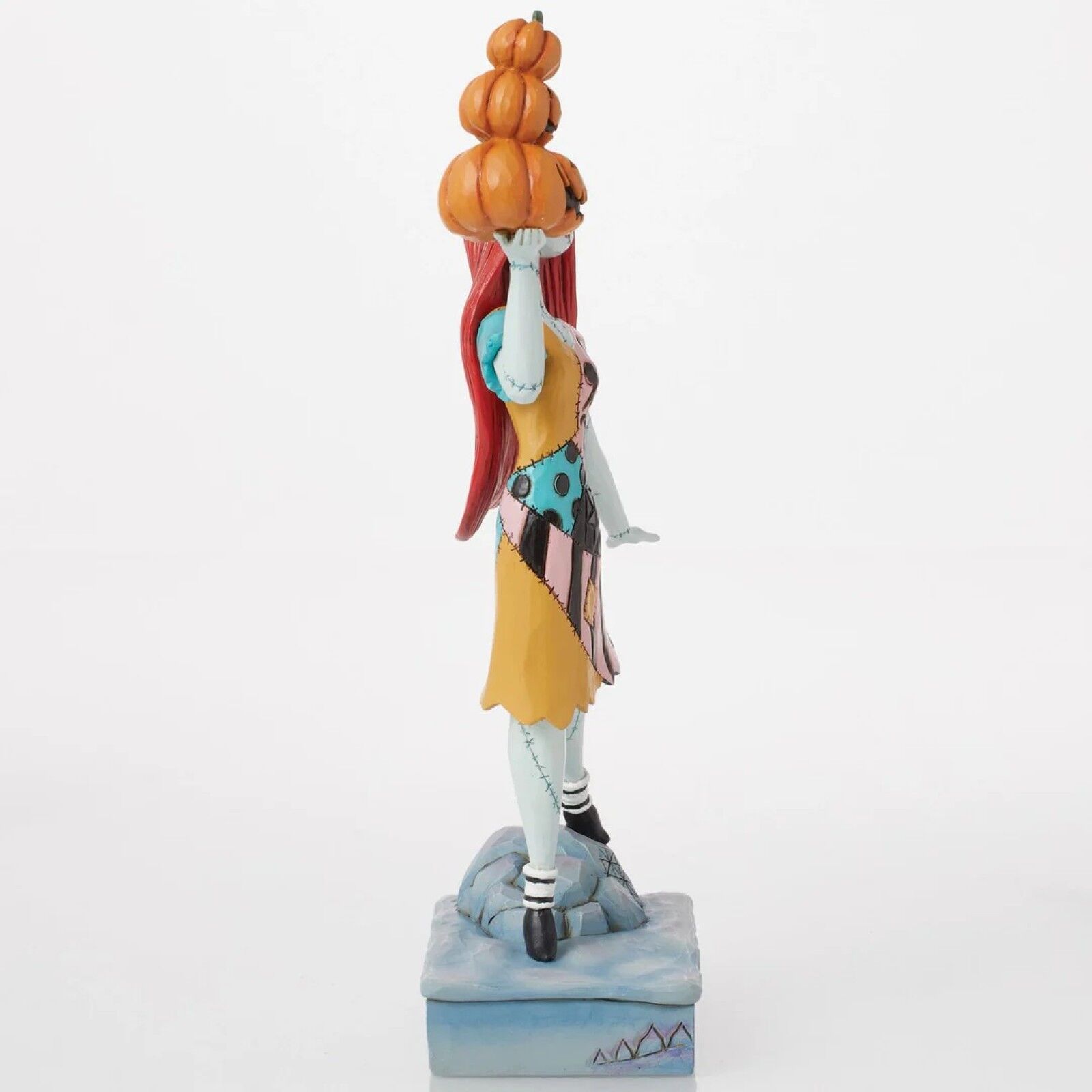 In this enchanting Jim Shore piece, Sally from The Nightmare Before Christmas raises a stack of intricately carved pumpkins into the night air. Her dress, fashioned with the artist's iconic patchwork and rosemaling designs, adds whimsical allure.