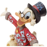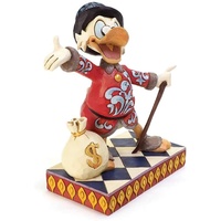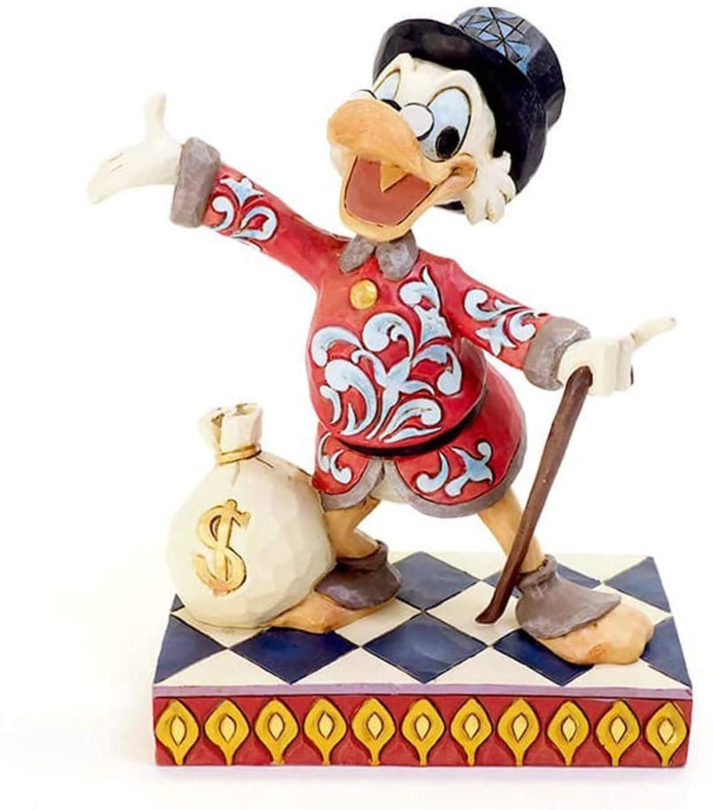 Money makes this wealthy duck's world go 'round! Designed by Jim Shore, Scrooge enlists his nephews to polish his beloved fortune so he can enjoy his favorite pastime: diving through his money. Live lavishly and add Scrooge to your treasures!