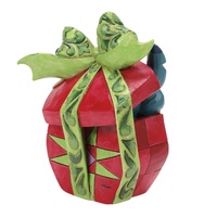 In this playful Jim Shore design, Stitch the alien bursts out of a vibrant Christmas present, showcasing his mischievous grin as he tears through festive wrapping. With his joyful chaos, Stitch proves that his lively presence is the best gift of all!