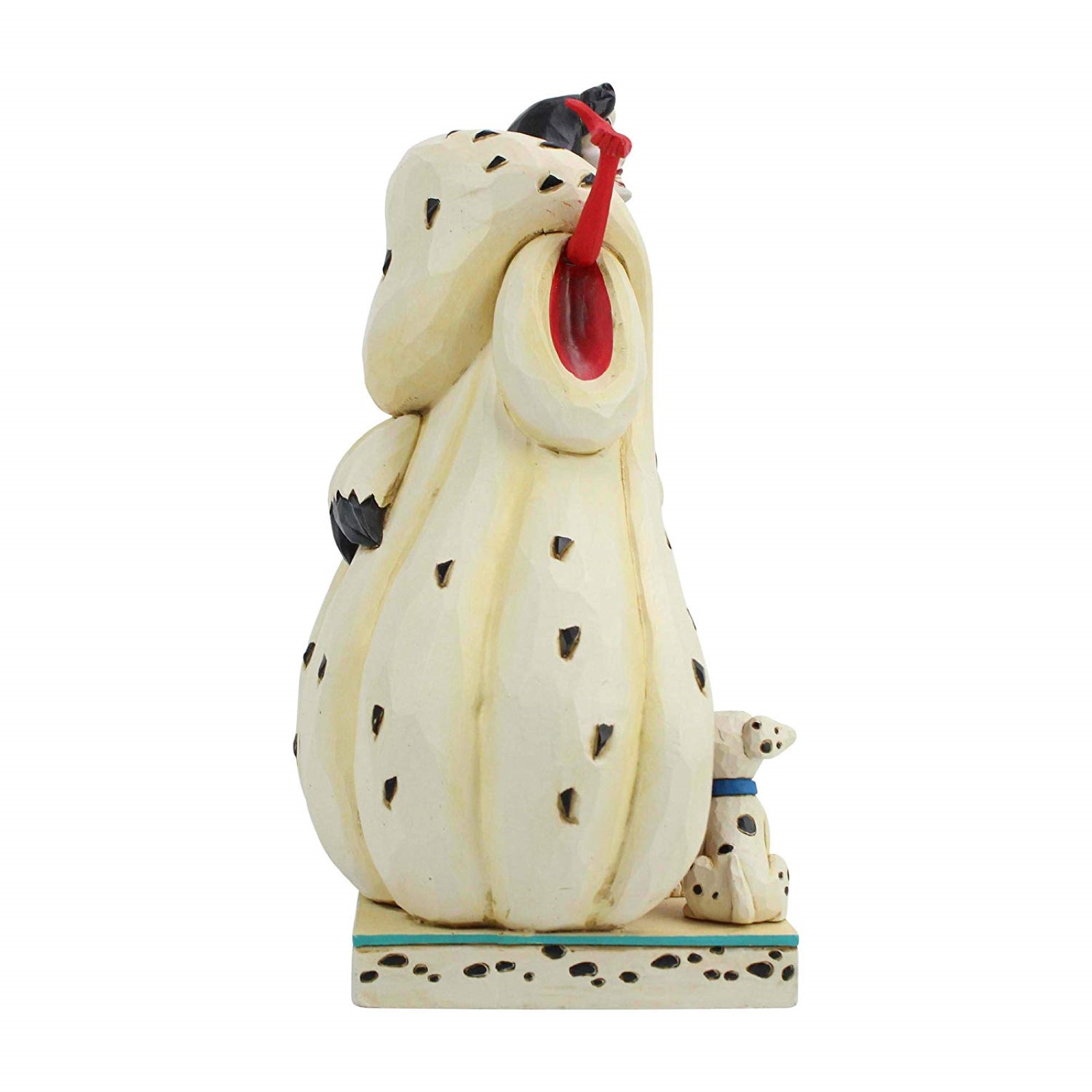 Cruella hides her malice well in this Jim Shore bust. With a wide smile on her face, the three dalmatians beneath her hold happy dispositions, not yet aware of her true intentions. Fashionably formidable, De Vil is the cruel amongst the cute.