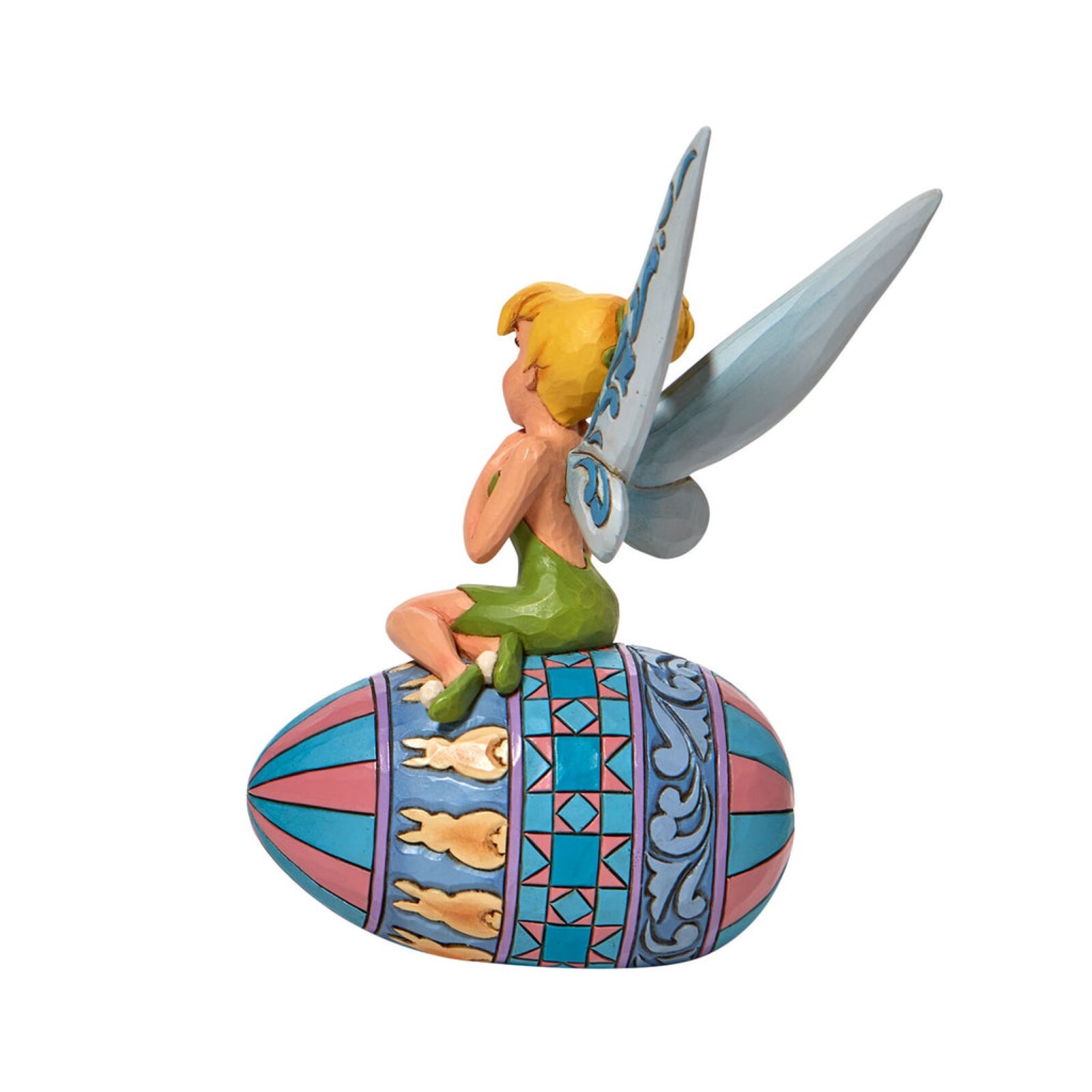 Celebrate this Easter in Neverland with this sweet figurine by Jim Shore. Sitting upon an Easter egg, Tinker Bell awaits Peter Pan or one of the Lost Boys to find her. With unique Jim Shore patterning on the egg, this figurine is a fresh find!