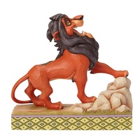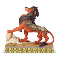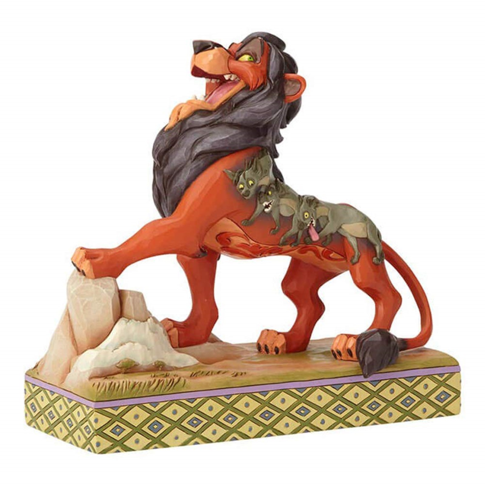 It's best to be prepared when this darkly ambitious usurper has his eyes on the throne! Designed by Jim Shore, Scar sings proudly of his villainous plot to steal the crown with details of his laughing, hyena henchmen decorating his pelt.