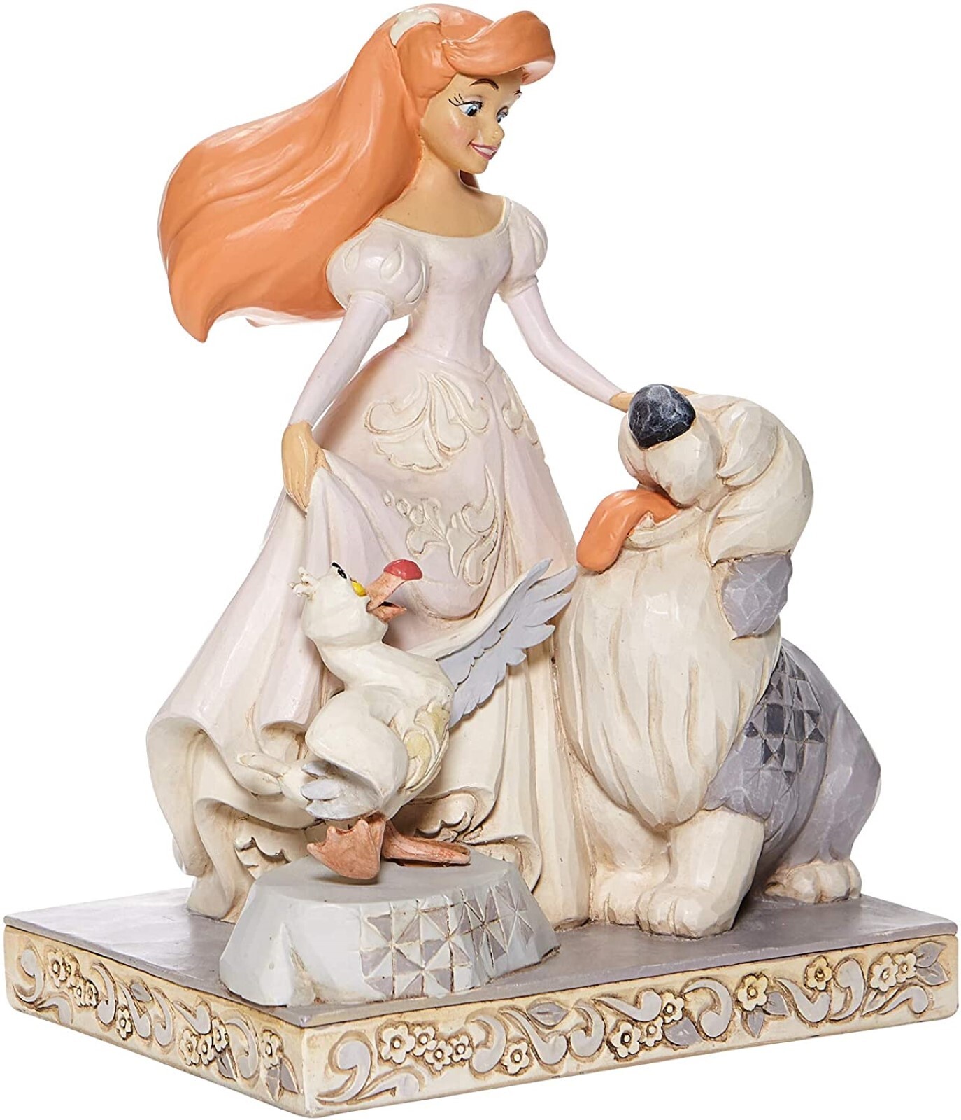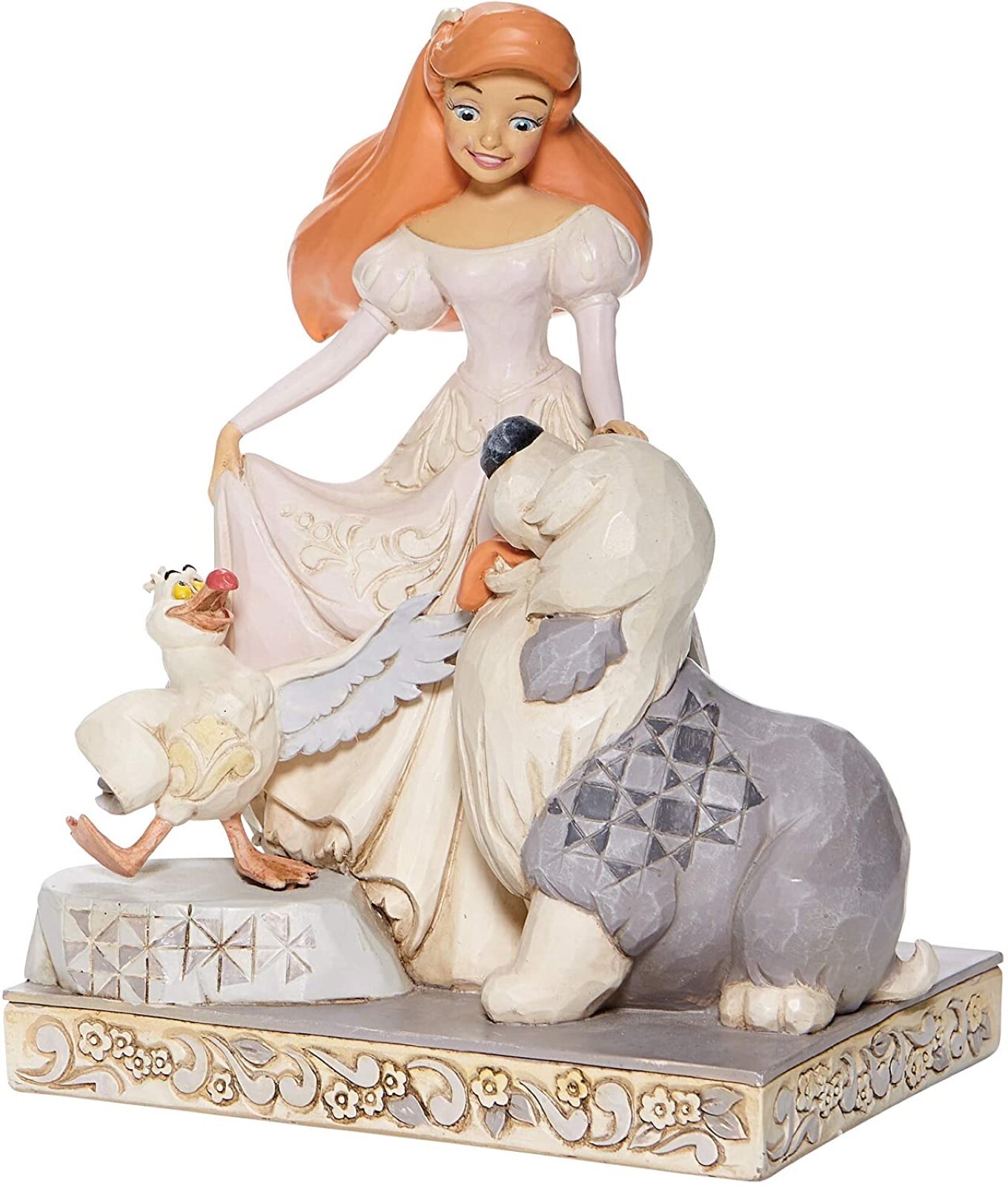 Scuttle the Seagull and Max the Dog frolic with Ariel in human form in this whimsical scene from The Little Mermaid. Handcrafted in delightful detail, this heartwarming design features Jim Shore's subtle White Woodland color palette.