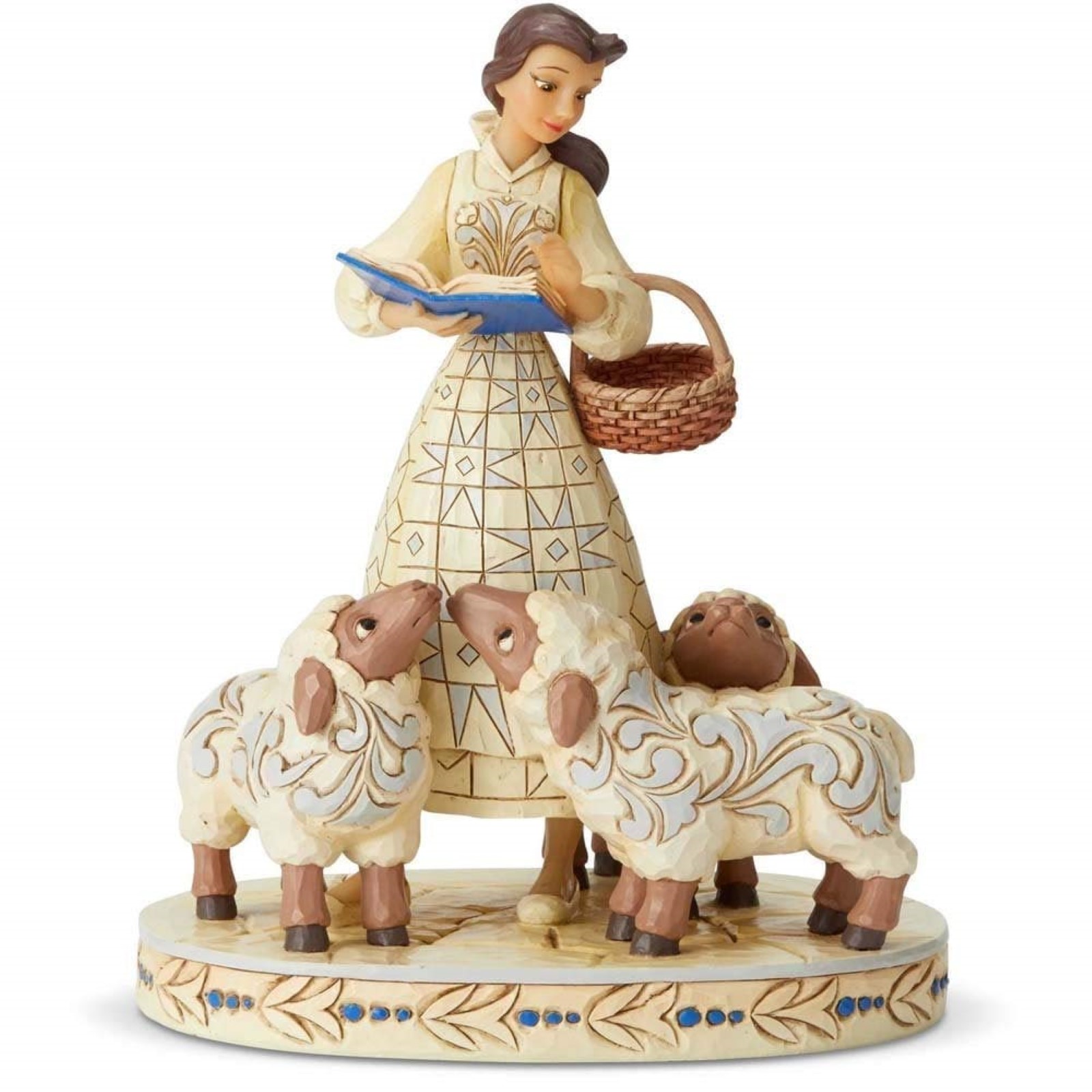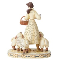 Daydream away with this imaginative, brave beauty designed by Jim Shore! In this lovely White Woodland piece, Belle tells tales of romance and far-off adventure to her sheep friends, not knowing she will soon find love on her own enchanting journey.