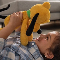 Mickey's loyal pup is a playful pal who's always ready for fun, and now he's here for a play date! Disney's Pluto, Mickey's excitable pet dog, is shown as a soft and huggable plush with authentic character details including his bright orange-yellow plush complemented by his long, floppy black ears, a pointed black nose on a happy muzzle, and a matching black tail. Pluto has been crafted with GUND Toothpick bear's signature slender frame and long, floppy limbs that dangle and make them oh-so-posable.