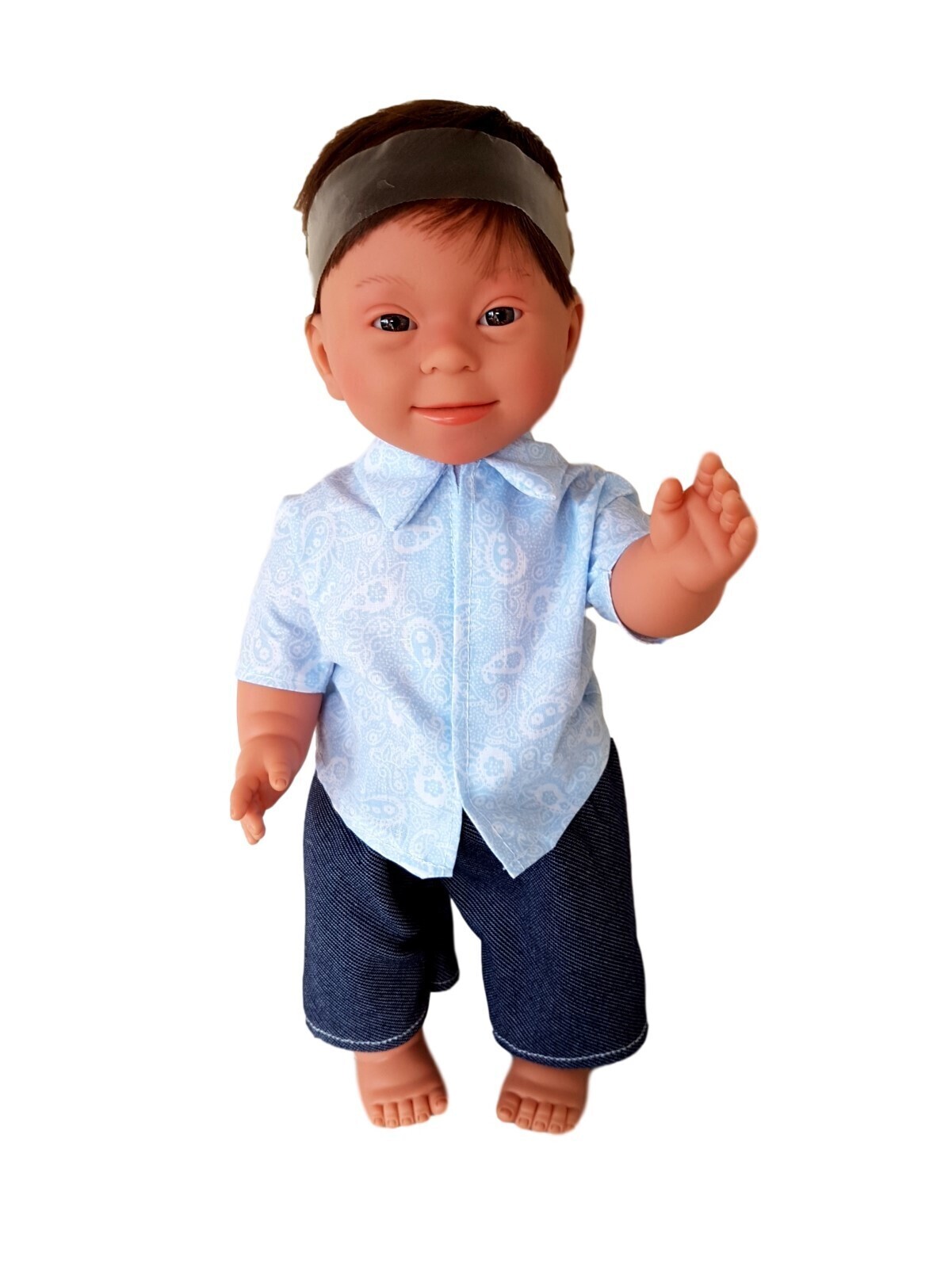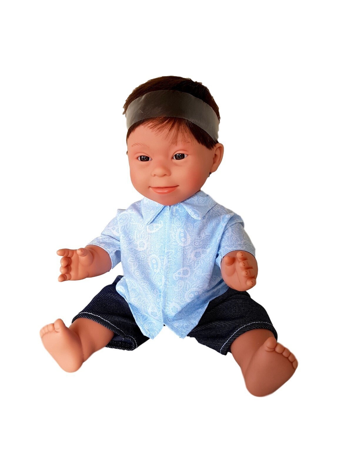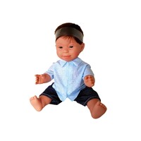 This gorgeous anatomically correct boy doll is made from soft vinyl with moveable arms and legs, and has brown eyes and brown/brunette hair.